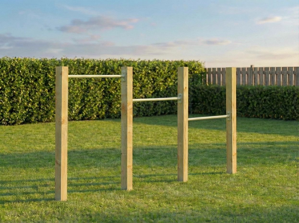 Triple duikelrek met drie pastelgroene gepoedercoate duikelstangen. De duikelstangen zijn 90cm. Ook worden er vier geïmpregneerd vuren houten palen meegeleverd met dit duikelrek. Zo'n duikelrek is een prachtige speel-attractie voor meerdere kinderen tegelijk. Dit grote duikelrek wordt standaard geleverd inclusief de afdekkappen op de palen. Een duikelrek wordt gratis door ons verzonden.