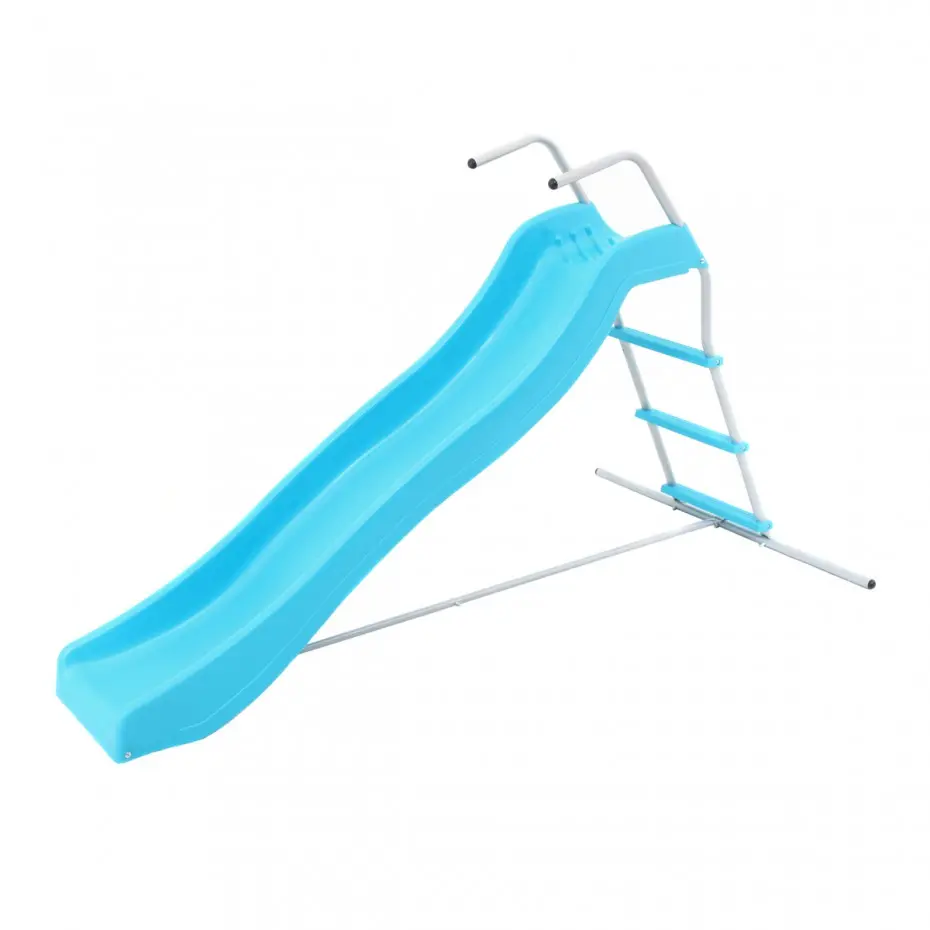 Mooie blauwe glijbaan compleet met ladder en stabilisatorstang | Eenvoudige montage | De glijbaanhoogte is 0,85m, lengte is ongeveer 1,70m | CE en TÌÏV gecertificeerd volgens Europese EN71 veiligheids standaard.