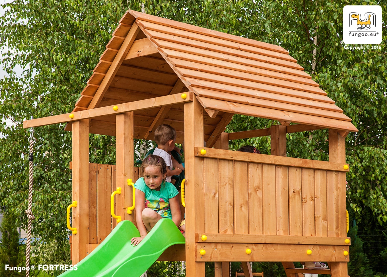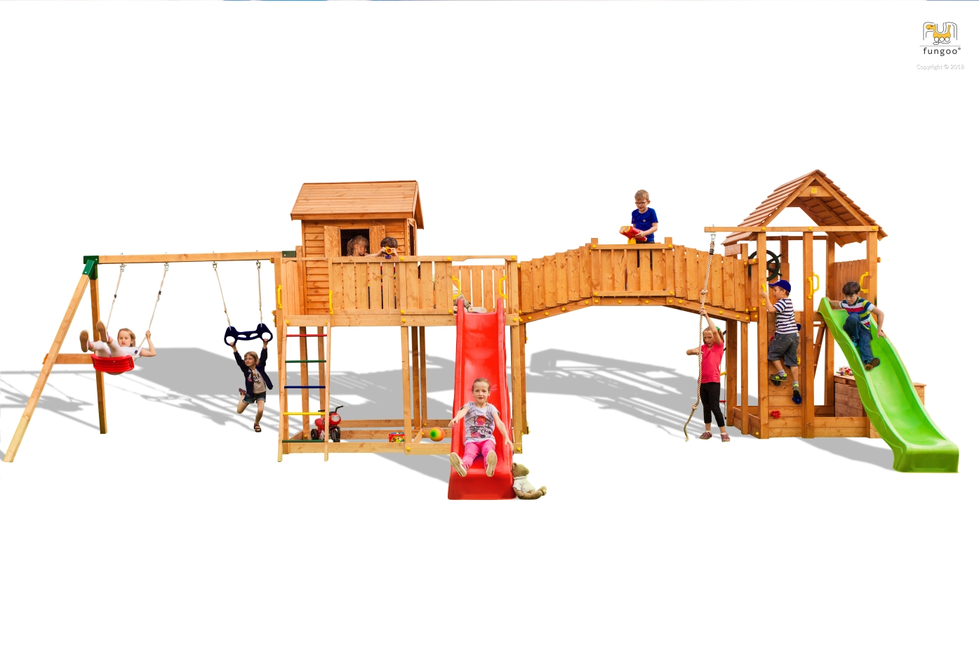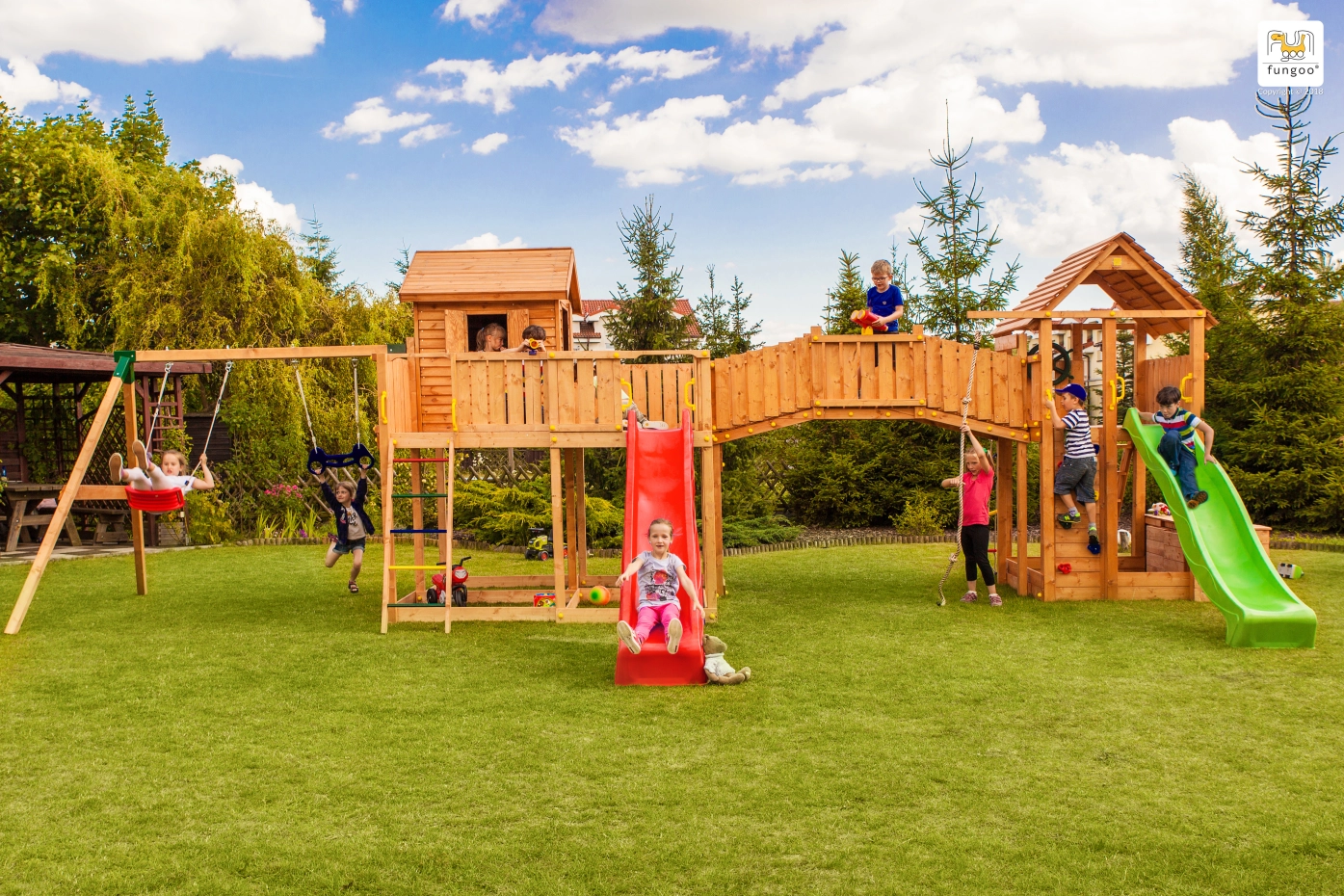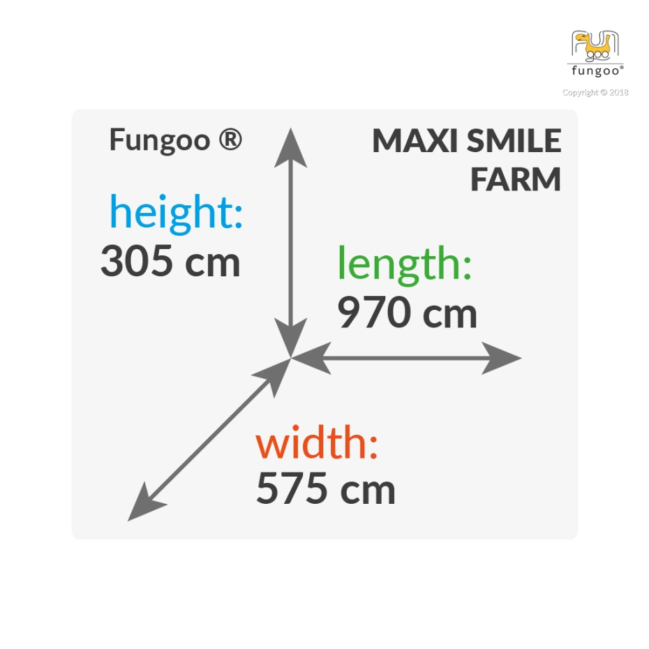 Deze grote speelcombinatie Smile Farm, van het merk Fungoo, zorgt, zoals de naam al zegt, voor een 'smile' op je gezicht. Het speeltoestel is voorzien van kleurrijke accessoires. De twee speeltoestellen worden verbonden door een loopbrug. Ook is het toestel voorzien van een aanbouwschommel. Er is ook aan praktische dingen gedacht, want naast het speeltoestel bevindt zich nog een handige box om het speelgoed in op te bergen. De box heeft twee klapdeurtjes aan de binnenzijde. Kortom, veel speelmogelijkheden in één!