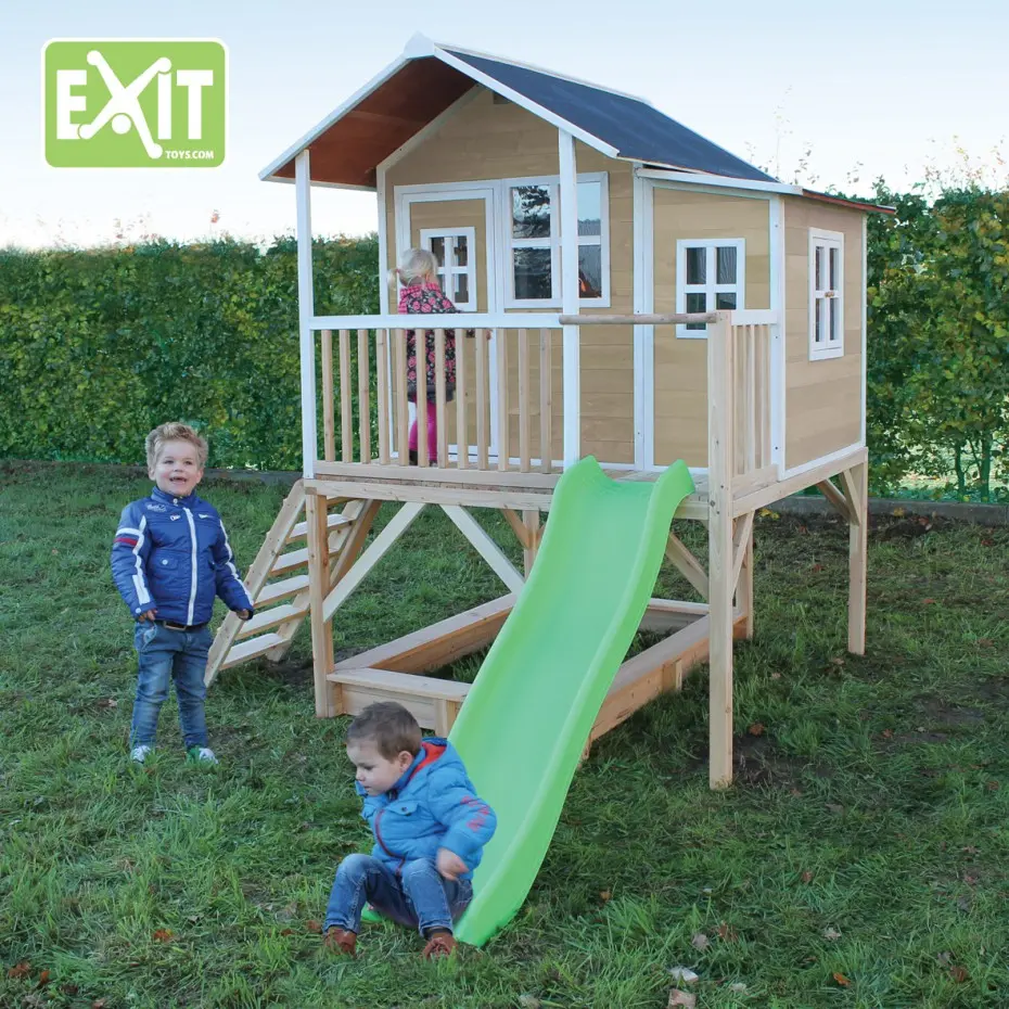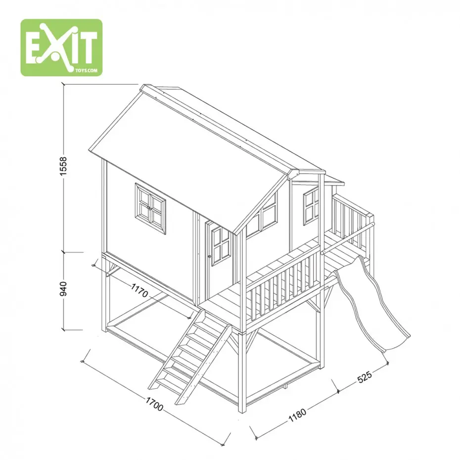 Welk kind wil er nu geen eigen speelhuis met glijbaan, zandbak en aanbouw in de achtertuin? Een plek om heerlijk te spelen met je broertje of zusje, vriendje of vriendinnetje? De Loft 550 is een speelhuis voor jong én oud. Het is met zijn royale binnenafmeting van 118x171 cm een huisje waar je heerlijk met meerdere kinderen in kan spelen. Het verhoogde huisje heeft een echte veranda en via de hoge glijbaan glij je zo weer naar beneden! En door het waterdichte dak blijft het altijd droog binnen! En de jongsten kunnen in de zandbak spelen terwijl de oudere kinderen boven spelen. Met zijn vrolijke wit gekleurde ramen is dit speelhuis een droomhuis voor ieder kind vanaf 3 jaar.