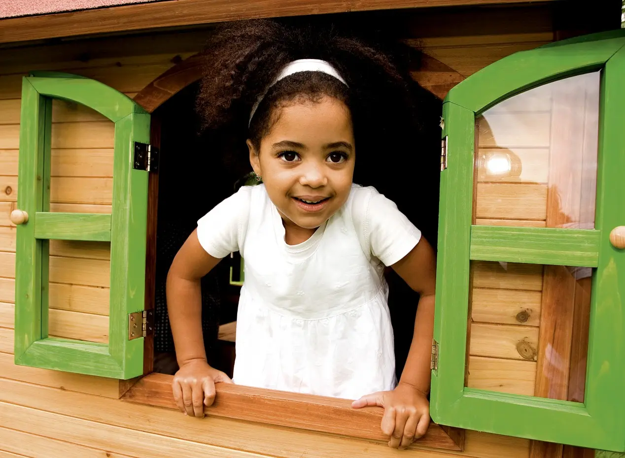 - De ramen van dit speelhuis zijn voorzien van transparant kunststof. Dit materiaal is veilig omdat het niet snel breekt en niet splintert.