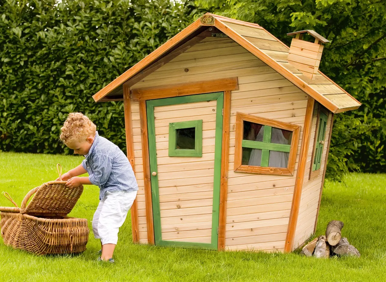 - De dikte van het hout; wanden van 15 mm en lijsten van 38 mm, maakt het speelhuis stevig en robuust, zodat het tegen een speelstootje kan.