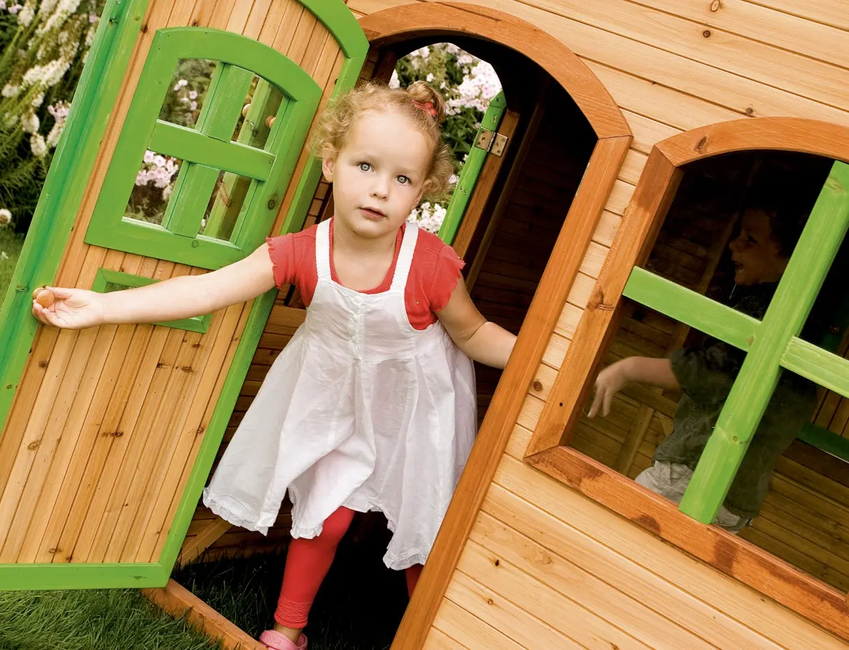 - De dikte van het hout; wanden van 15 mm en lijsten van 38 mm, maakt het speelhuis stevig en robuust, zodat het tegen een speelstootje kan.