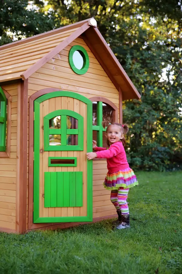Gezellig in de tuin spelen in je eigen speelhuisje. Het speelhuisje is net echt, met de halfronde deur en ramen. Bij mooi weer zet je de ramen lekker open. Regent het? Geen probleem: je doet de deur en ramen dicht en speelt droog in je eigen speelhuisje in de tuin!