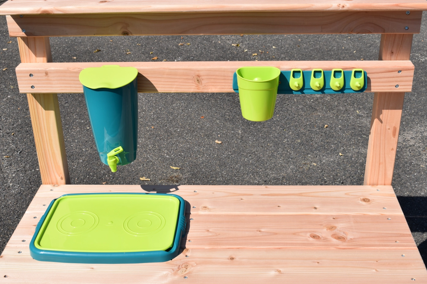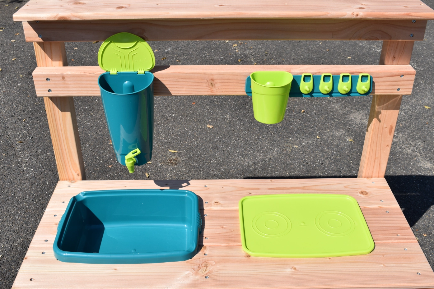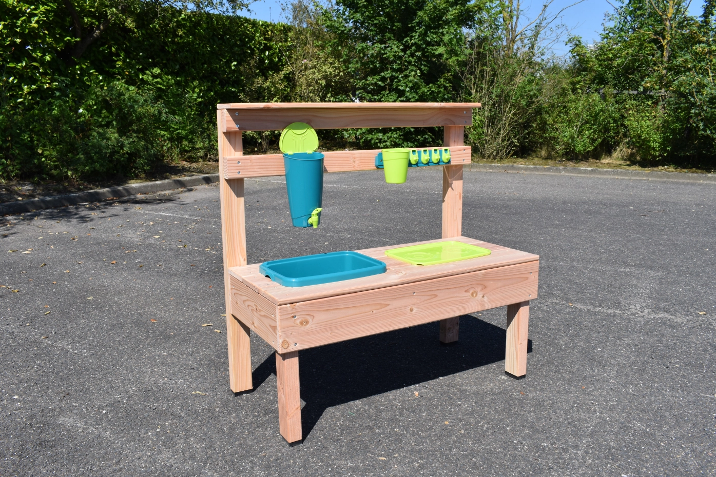 Maak de lekkerste modder cakejes en de mooiste zandtaartjes met deze houten zand- en water keuken.