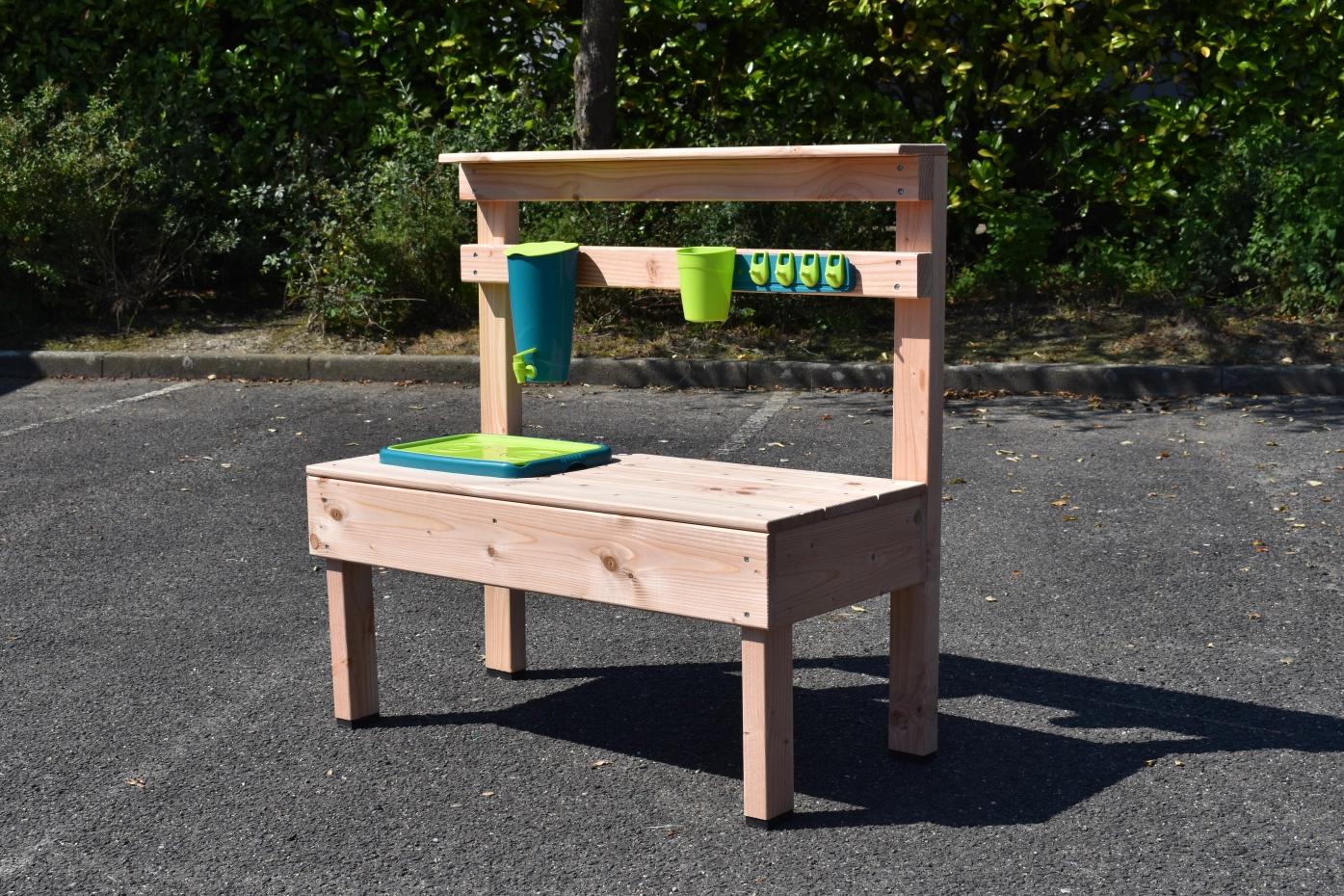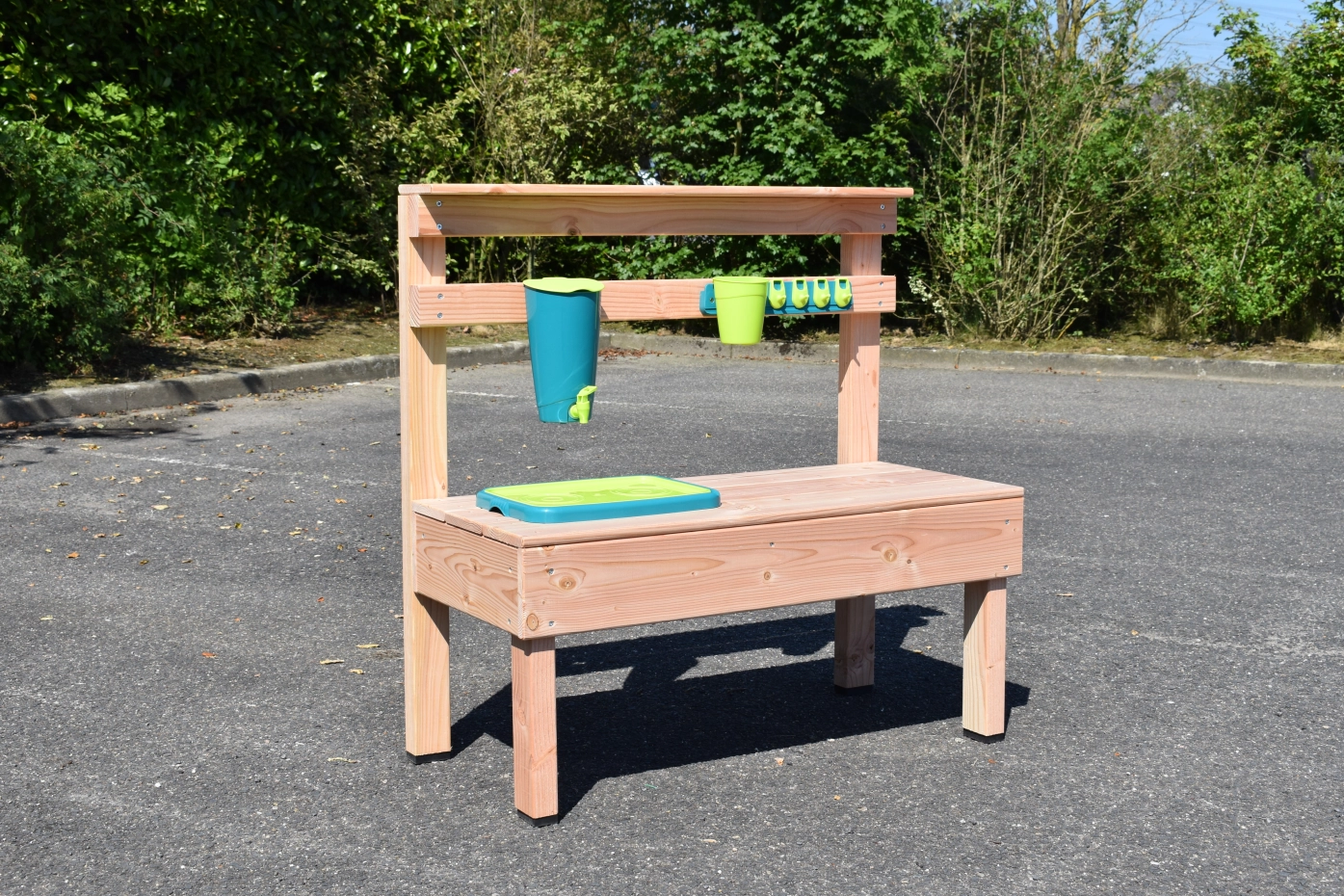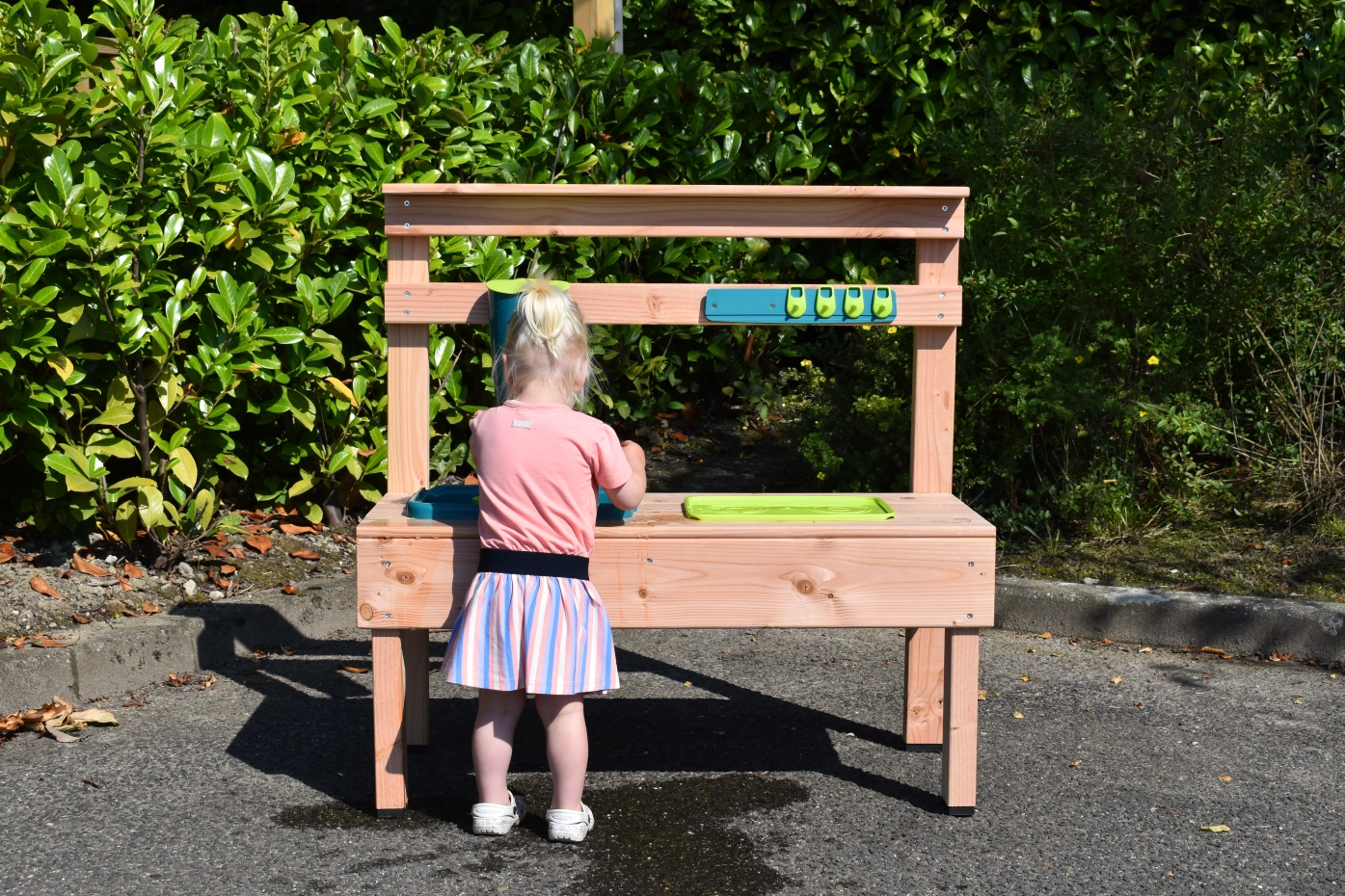 Maak de lekkerste modder cakejes en de mooiste zandtaartjes met deze houten zand- en water keuken.