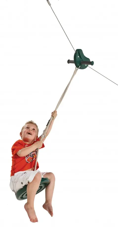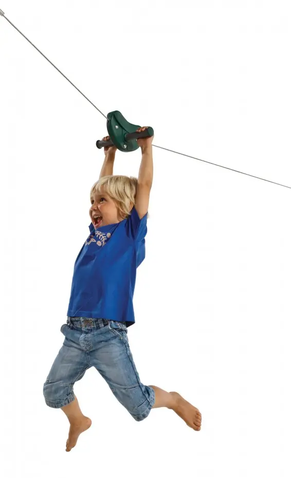 Kabelbaan voor particulier gebruik. Puur genieten met deze geweldige attractie in uw eigen tuin. Hangend of zittend door de tuin vliegen...! Maar liefst 30 meter lang. De kabelbaan is geschikt voor 1 gebruiker, ouder dan 6 jaar, en met een gewicht tot 70 kg. De prijs is inclusief schotelschommel!