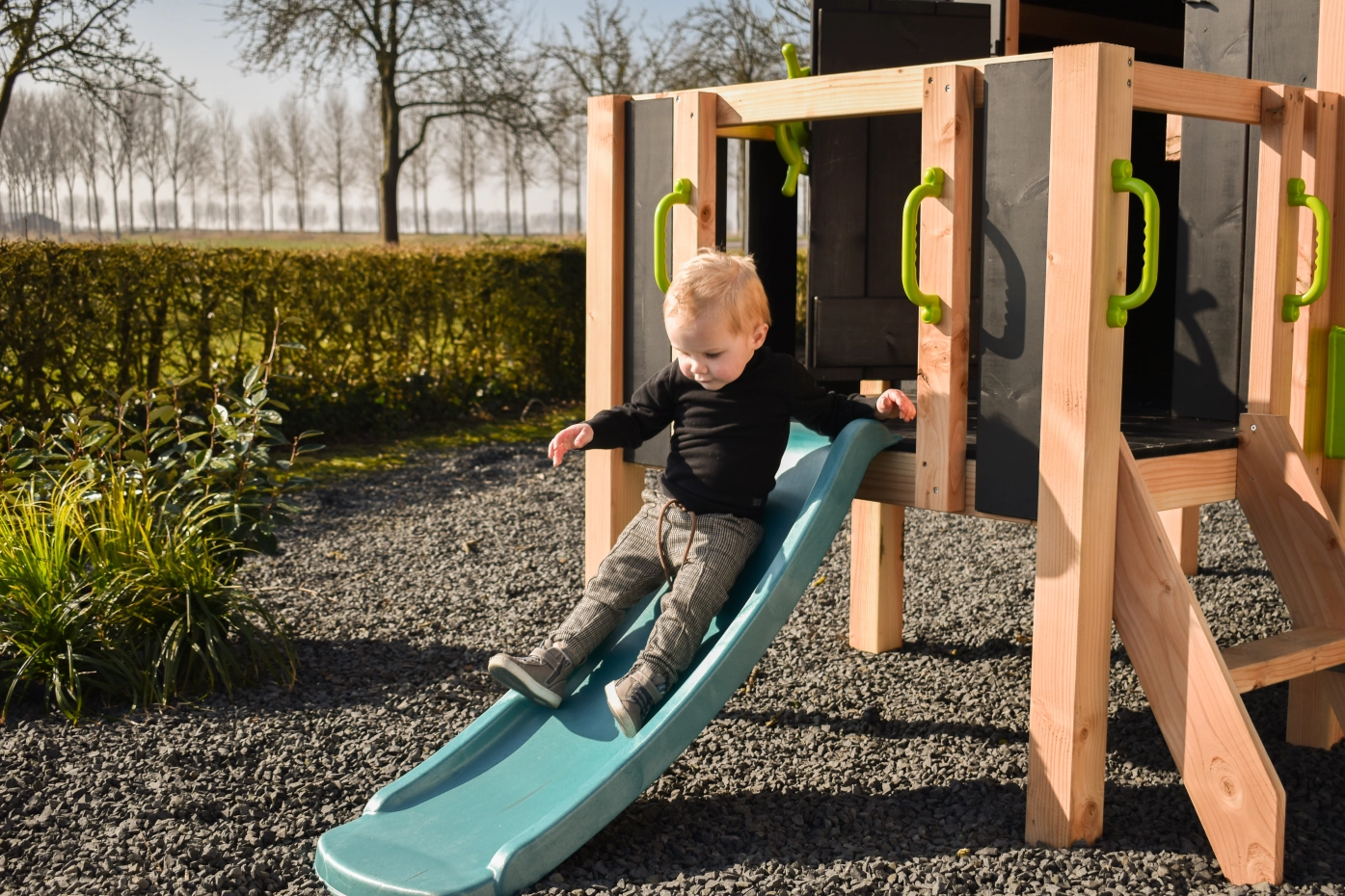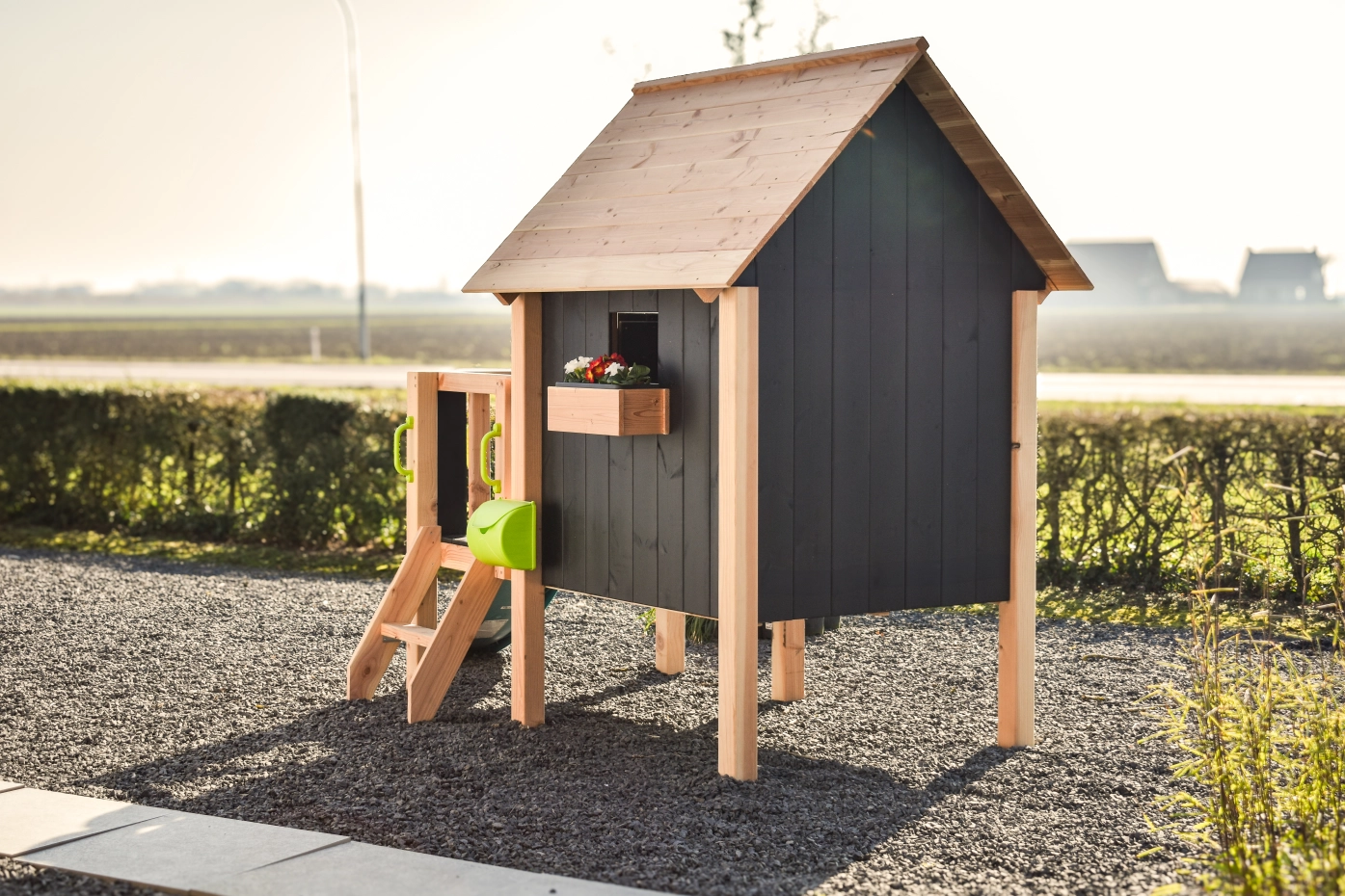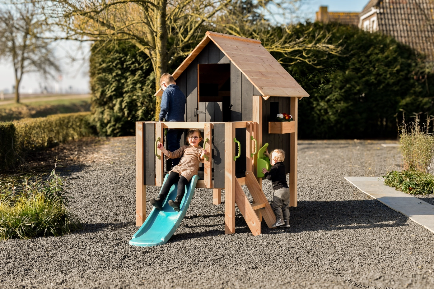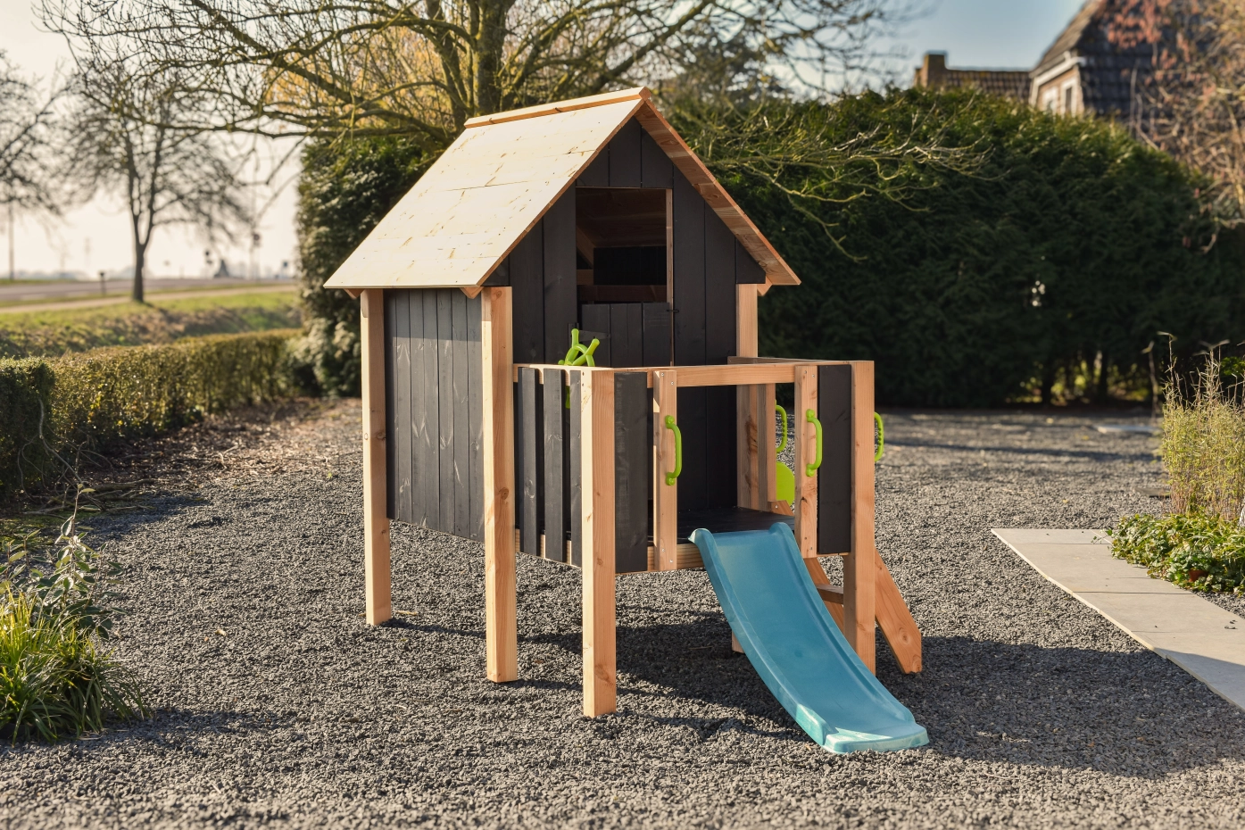 Speelhuis Dream 60 is een knus en stevig speelhuisje met een platformhoogte van 60 cm – laag bij de grond, maar toch met een leuke glijbaan voor veel speelplezier. Het huisje heeft een klassiek puntdak dat zorgt voor een gezellige, tijdloze uitstraling.