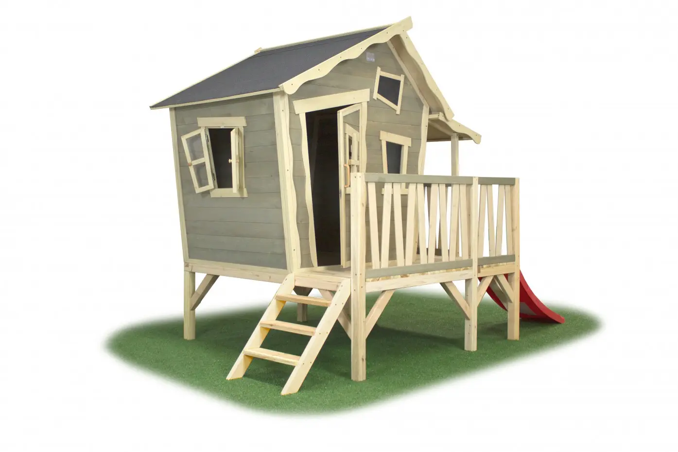 Welk kind wil er nu geen eigen speelhuis? Een geweldige plek om te spelen, samen met je broertje of zusje, vriendje of vriendinnetje. En de EXIT Crooky 350 is wel meteen een prachtig huisje! Met zijn natuurlijke kleurencombinatie, asymmetrische ramen en deur lijkt dit speelhuis op een echt zelf gebouwde blokhut! Op de veranda kunnen kids lekker door blijven spelen, in de schaduw en zelfs als het regent! Met het glijbaantje glij je zo weer naar beneden. En met het krijtbord op de voorzijde van de EXIT Crooky is jouw stoere boomhut helemaal af! De binnenafmetingen van de EXIT Crooky lopen uiteen van 110,5x110,5 cm op de grond tot maar liefst 138x110,5 cm op het breedste punt waardoor het een lekker ruim huisje is waar je heerlijk met meerdere kinderen in kan spelen.
