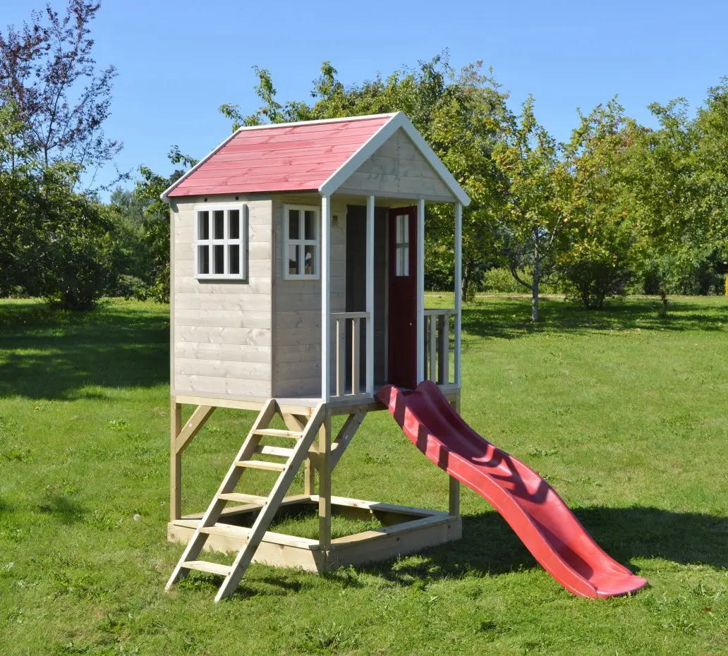 Speelhuisje Nordic Adventure House met glijbaan en zandbak; een mooi, modern en stijlvol houten speelhuisje. Perfect voor kinderen om hun eigen wereld te ontdekken in hun eigen tuinhuis. Het speelhuisje biedt perfecte mogelijkheden om buiten te spelen, zelfs in slechte weersomstandigheden. Het houten speelhuisje is geweldig voor kinderactiviteiten, verjaardagsfeestjes in hun eigen tuinhuis. Hiermee kunt u genieten van avonturen en het kan ook worden gebruikt als opslag voor speelgoed en accessoires.