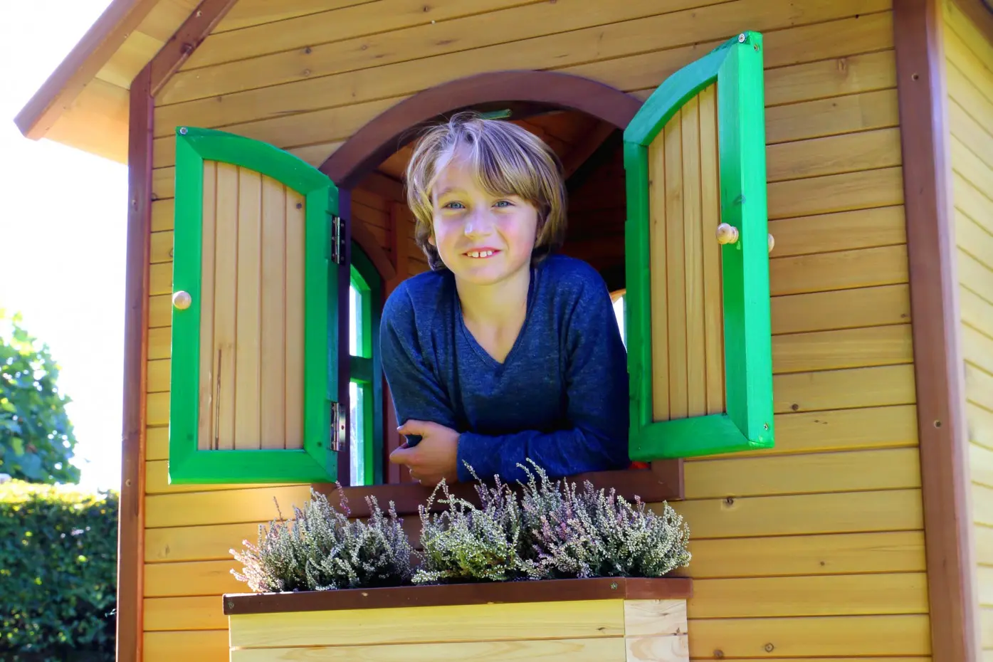 - De dikte van het hout; wanden van 15 mm en lijsten van 38 mm, maakt het speelhuis stevig en robuust, zodat het tegen een speelstootje kan.