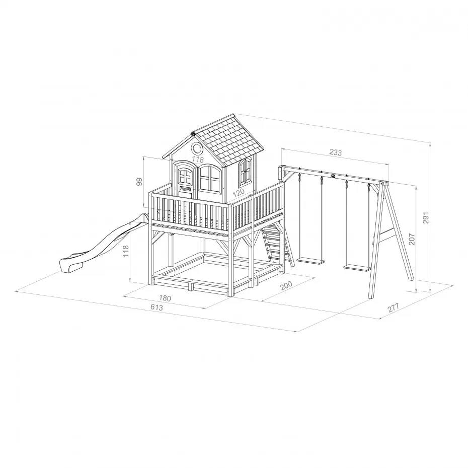 Het speelhuis met de onbegrensde mogelijkheden! Het is onmogelijk dat kinderen zich hier niet uren mee zullen vermaken op een mooie zonnige dag. Klimmen, glijden en schommelen zijn de favoriete bezigheden van jonge kinderen. En dat is nou juist allemaal mogelijk met Liam. De balustrade maakt het allemaal nog unieker. Daarmee kunnen de kinderen turen over de omgeving en kunnen ze vriendjes en vriendinnetjes van verre aan zien komen. Deze Liam heeft twee schommelzitjes. Het schommelzitje van de schommel wordt door ons geleverd. 100% FSC houtsoort- Aziatisch cederhout, genaamd Cunninghemia lanceolata.