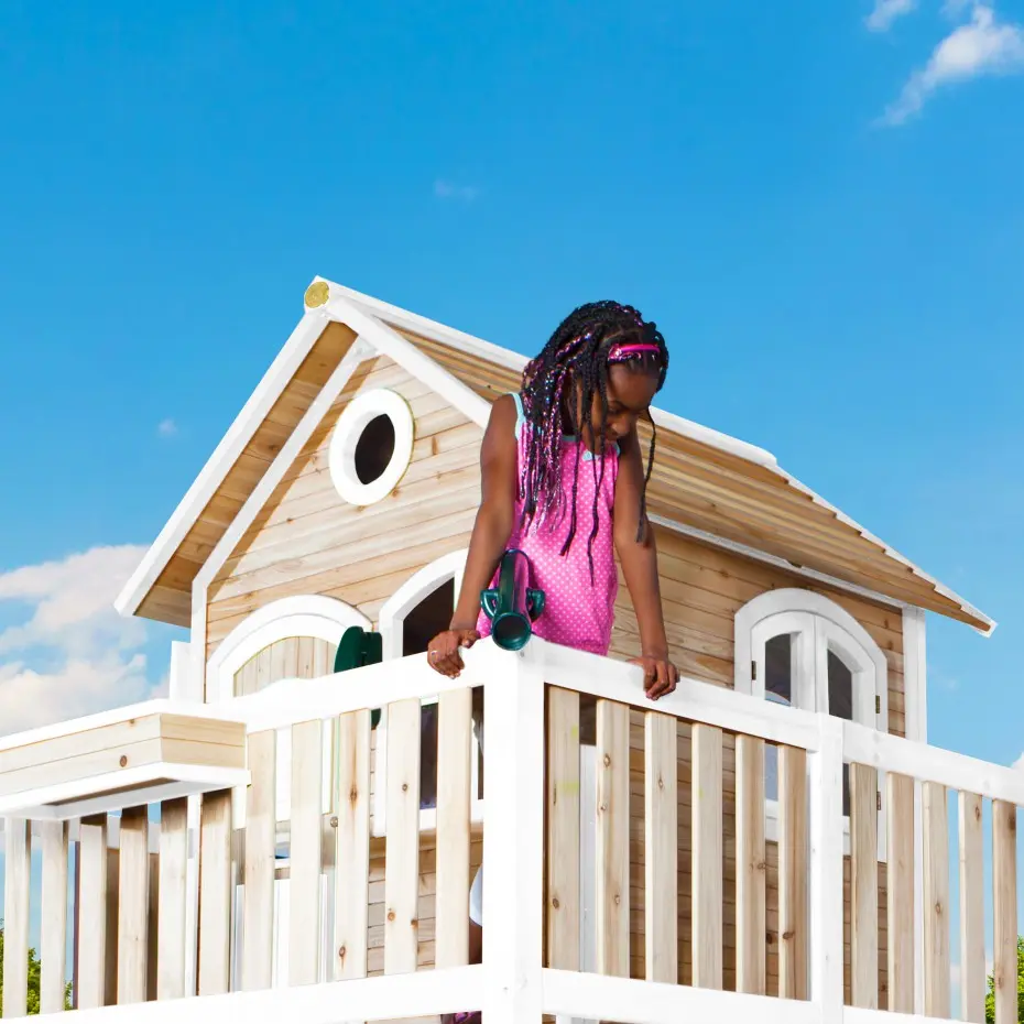 • Dit speelhuis is vervaardigd uit Aziatisch cederhout dat onderhoudsarm is en een natuurlijke afweer tegen schimmels, ongedierte en houtrot heeft