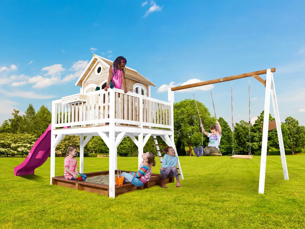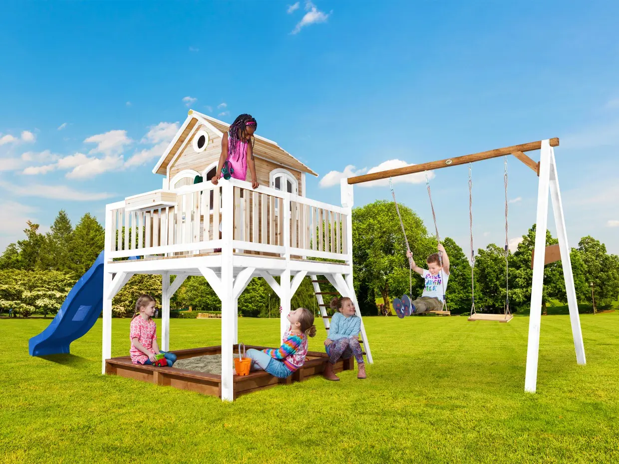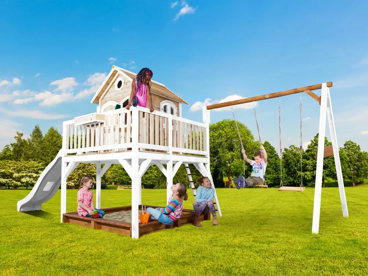 Houten speelhuis met glijbaan Liam| AXI | Wit