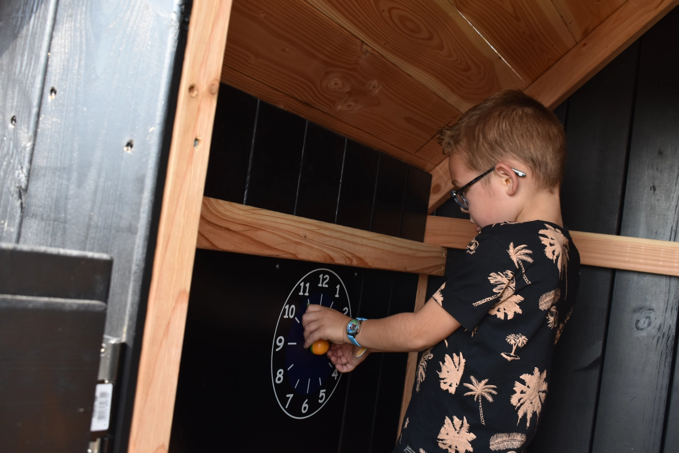 De combinatie van Douglashout met zwarte planken maakt het een chic en prachtig geheel. Een plaatje voor in de tuin!