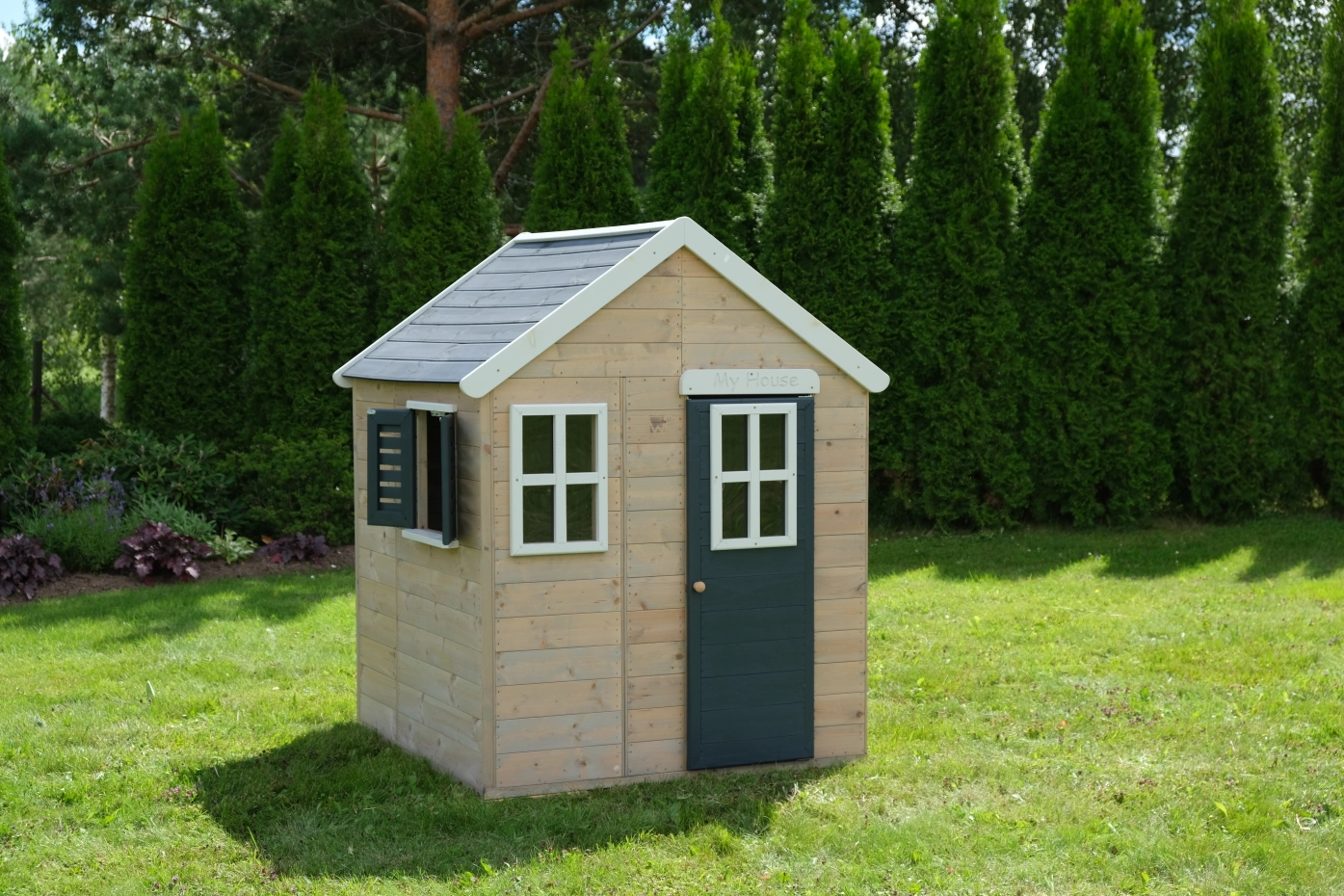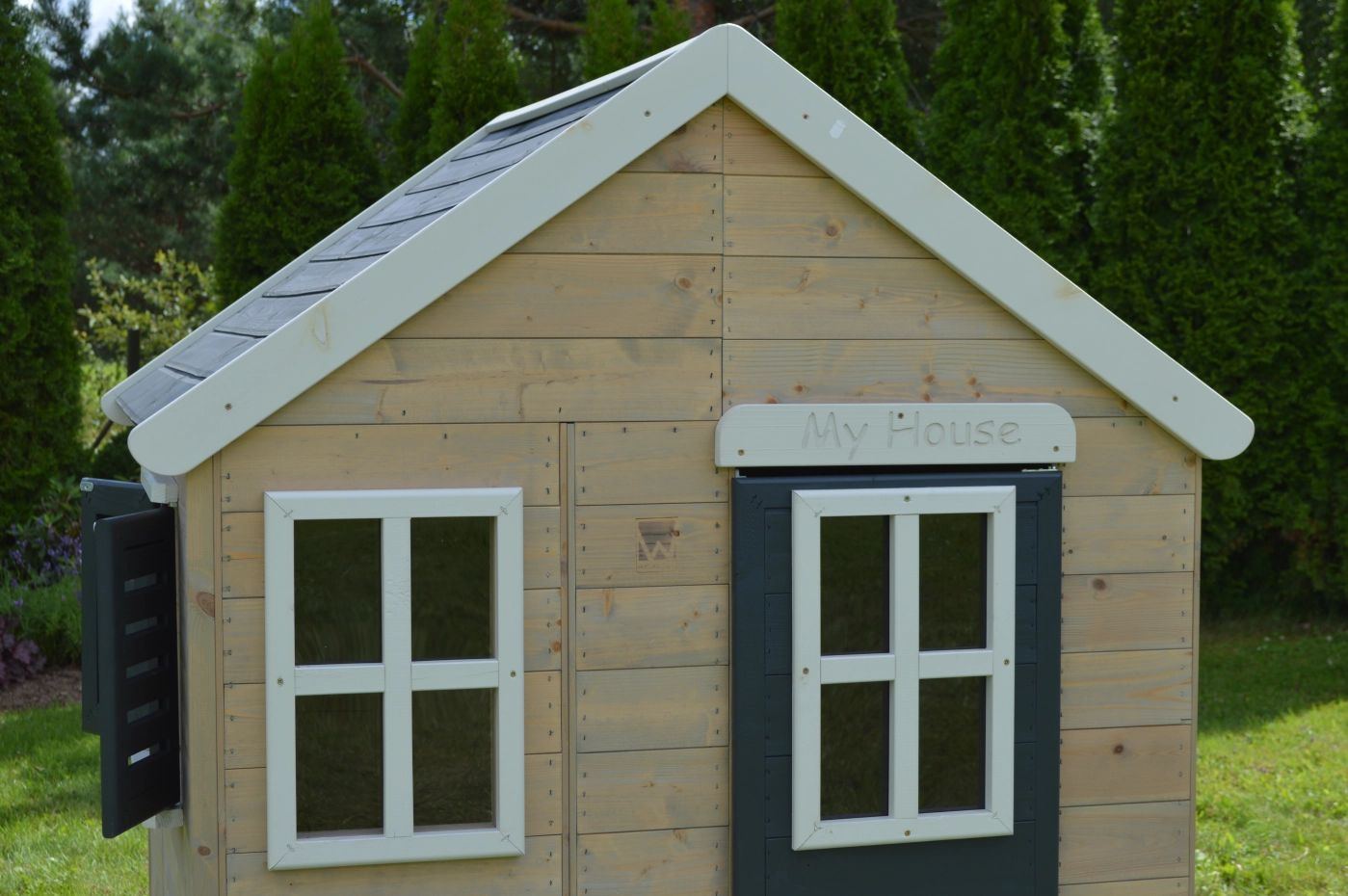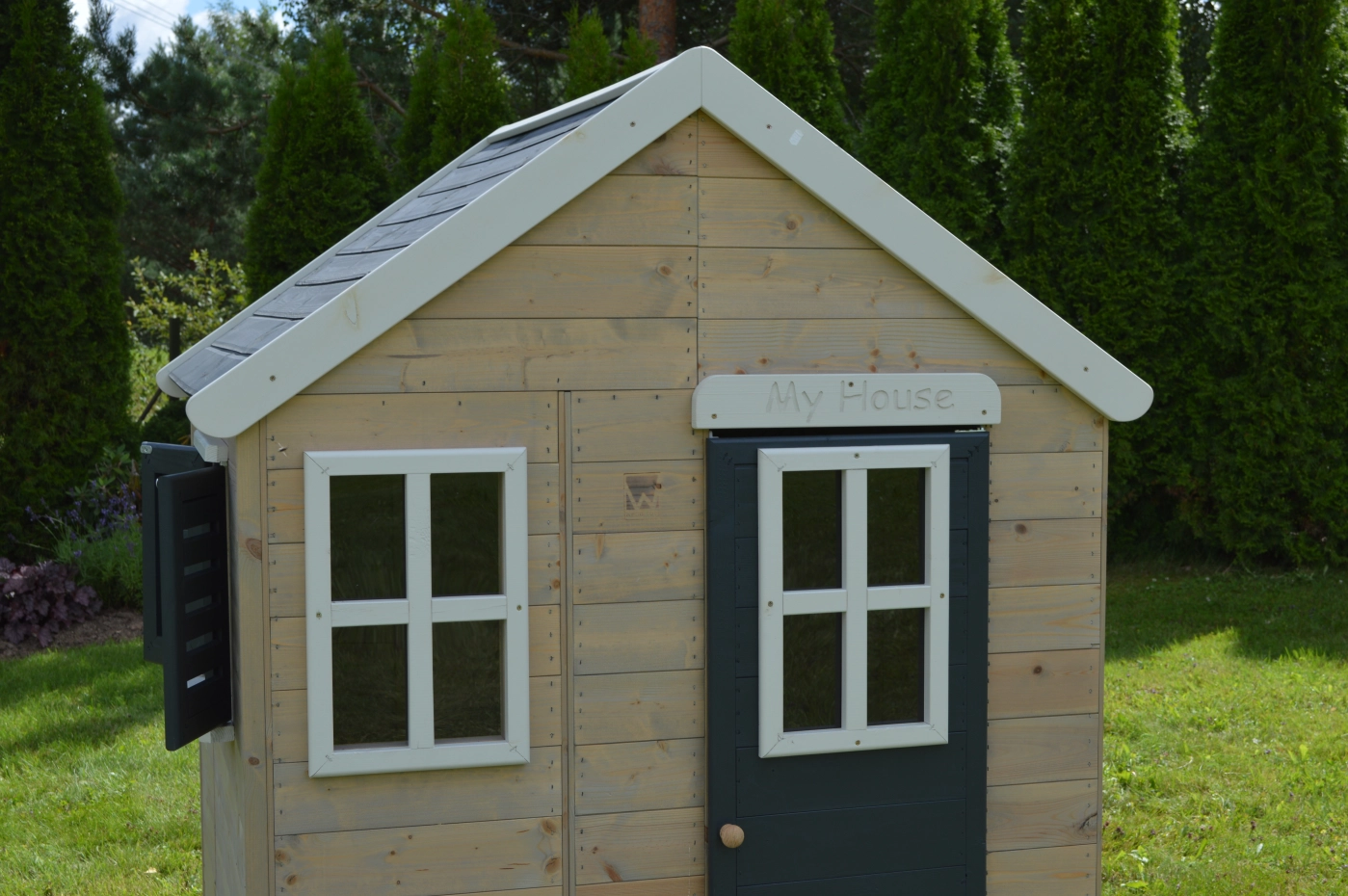 - Het speelhuis is gemaakt van Nordic Spruce (dennenhout) en het is beschermd tegen schimmels