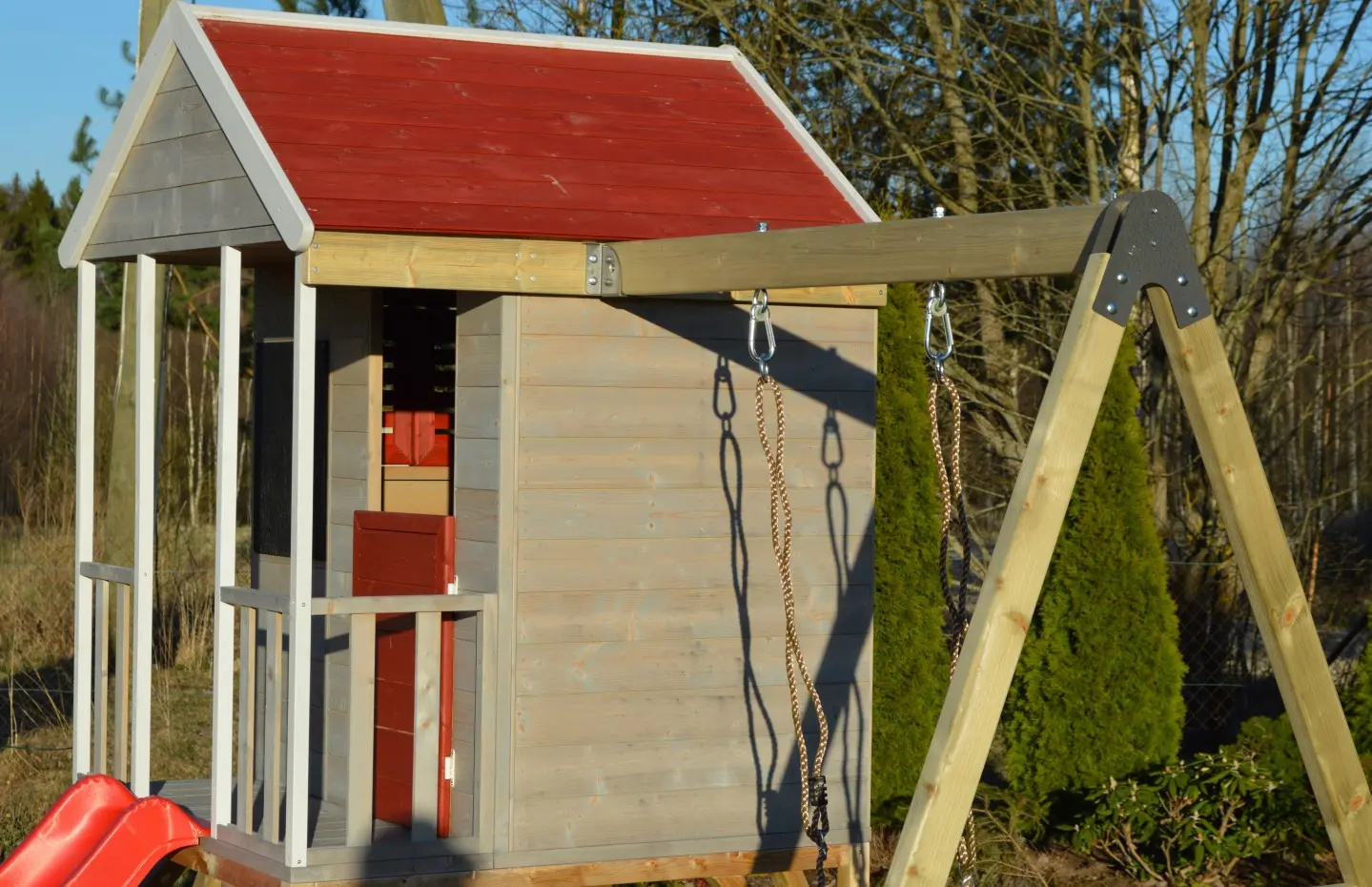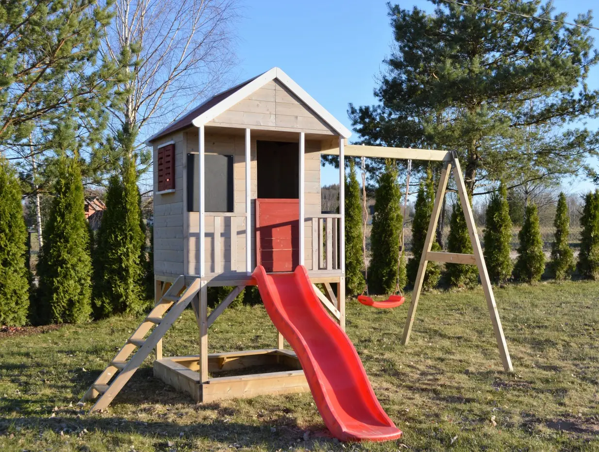 - Het speelhuis is gemaakt van Nordic Spruce (dennenhout) en het is beschermd tegen schimmels