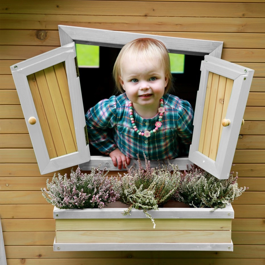 • De ramen van dit speelhuis zijn voorzien van transparant kunststof. Dit materiaal is veilig omdat het niet snel breekt en niet splintert.
