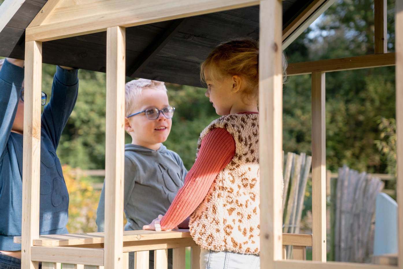 Het EXIT Panorama 100 houten speelhuis is dé plek waar kinderen samen spelen en hun fantasie de vrije loop laten. Dankzij het open ontwerp lopen ze er zo in en uit, terwijl jij altijd zicht houdt. Het Panorama 100 houten speelhuis is weerbestendig, onderhoudsarm en gemaakt van FSC-gecertificeerd hout. Zo genieten kinderen jarenlang van hun EXIT Panorama 100 houten speelhuis!
