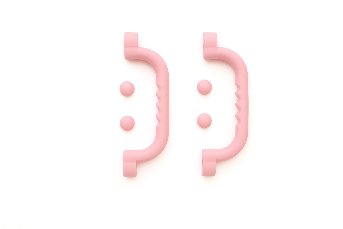 Handgrepen in de kleur pastelroze. Stevige handgrepen geschikt voor een klimtoren of speeltoren. De handgrepen zijn verkrijgbaar in verschillende kleuren. Een handgreep is een praktische toevoeging aan uw speeltoestel. De handgrepen geven het kind een extra veilig gevoel.
