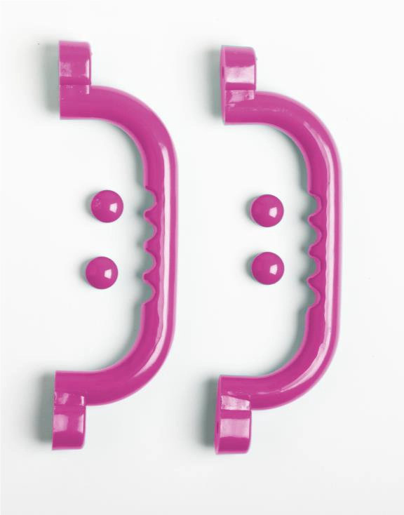 Deze set van twee roze handgrepen is een ideale toevoeging aan speeltoestellen en speelhuisjes. De handgrepen zorgen voor extra grip en veiligheid tijdens het spelen, zodat kinderen zorgeloos kunnen klimmen en klauteren. Gemaakt van stevig kunststof en eenvoudig te monteren met de bijgeleverde schroeven en afdekdoppen. De vrolijke roze kleur geeft elk speelproject een speelse uitstraling. Perfect voor een veilige en kleurrijke speelomgeving!