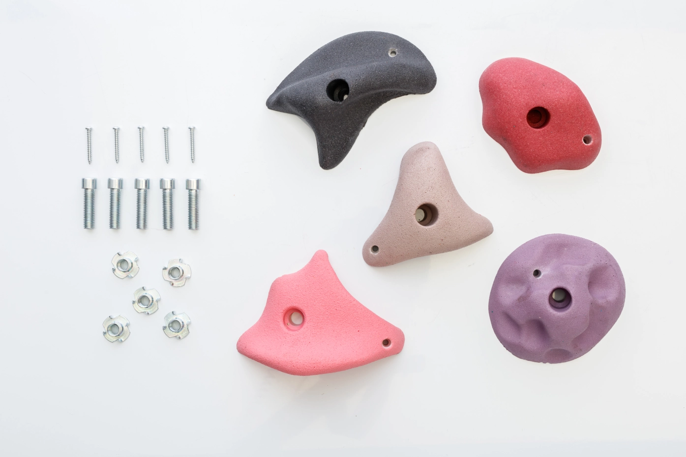 Creëer een veilige en mooie klimwand met deze set van 5 hoogwaardige klimstenen, elk met een omvang van 100-120 mm rond. Gemaakt van duurzaam kunsthars met geïntegreerde metalen sluitringen, bieden deze stenen optimale grip. De set wordt compleet geleverd met cilinderbouten (M10), inslagmoeren en schroeven. Dankzij de dubbele bevestigingspunten blijven de stenen stabiel en wordt rotatie voorkomen. Ideaal voor gebruik op speeltoestellen.