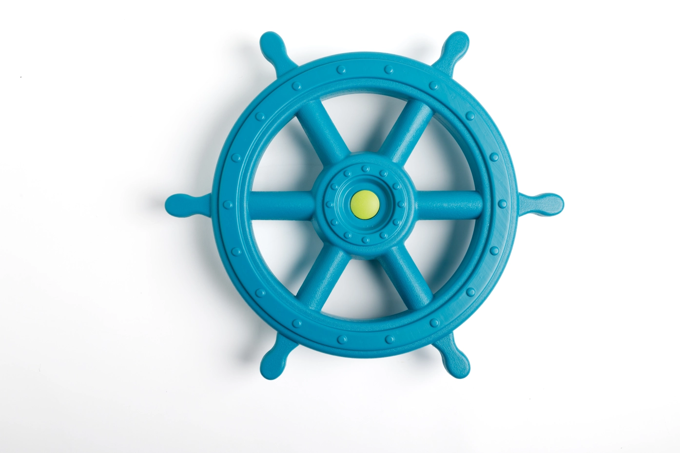 Een groot stuurwiel XXL in de kleur turquoise/limoengroen. De afmeting is Ø54cm. Voel je een echte piraat met dit megagrote speelgoed stuur. Het piratenstuur is een leuke uitbreiding voor aan het speeltoestel. Het stuurwiel wordt geleverd inclusief bevestigingsmateriaal en is heel eenvoudig te monteren.