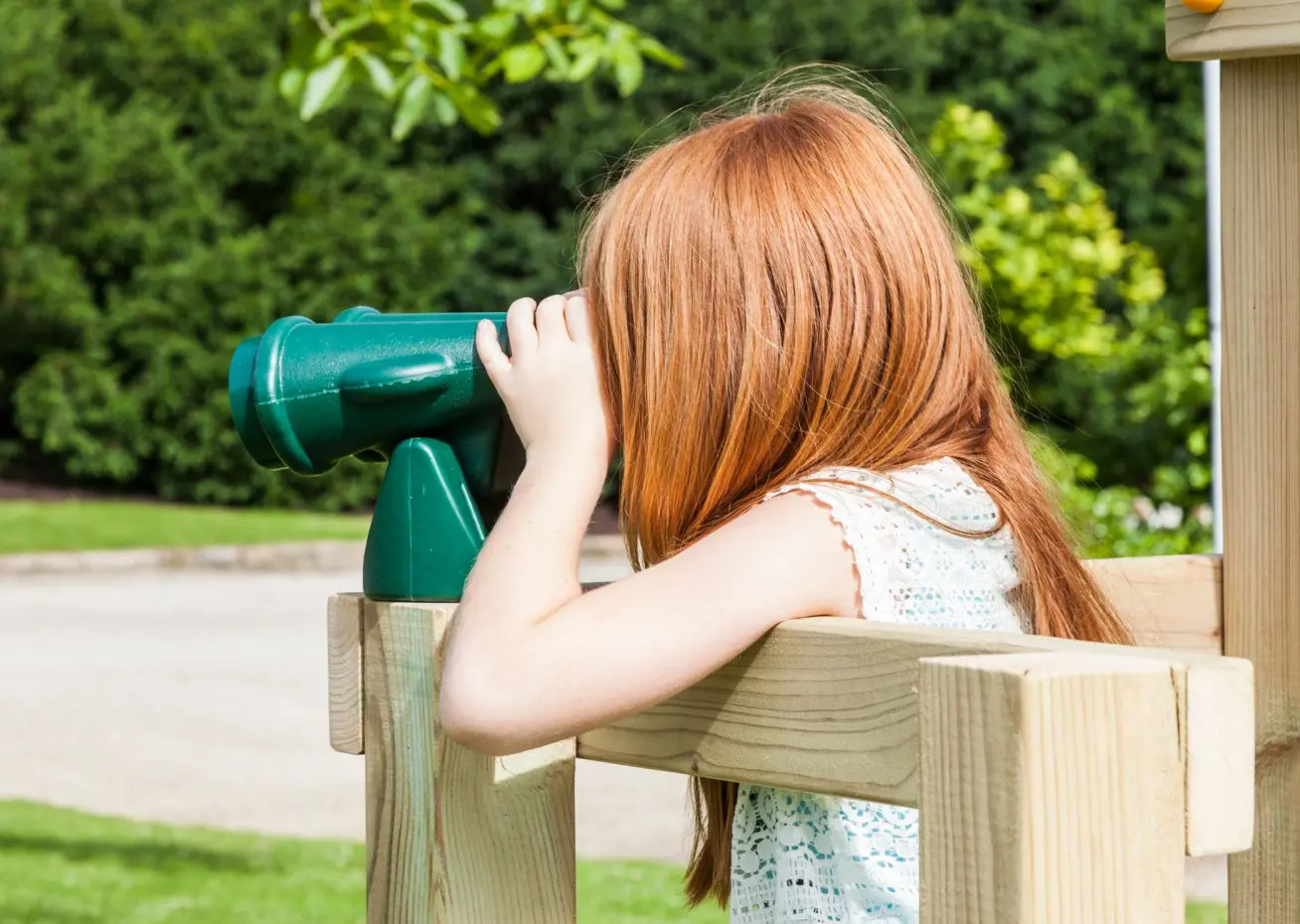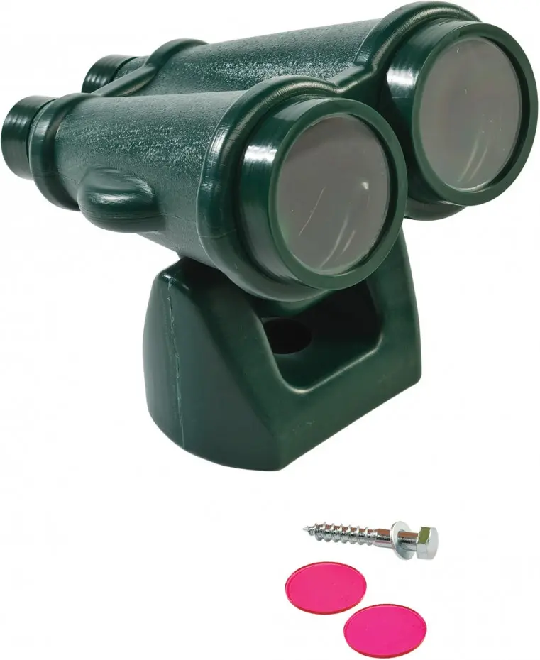 Een leuke groene verrekijker voor het speeltoestel. Leuke accessoire voor op het speeltoestel voor nog meer speelplezier en fantasie. Inclusief 2 gele en 2 roze lenzen. Verkrijgbaar in verschillende kleuren.