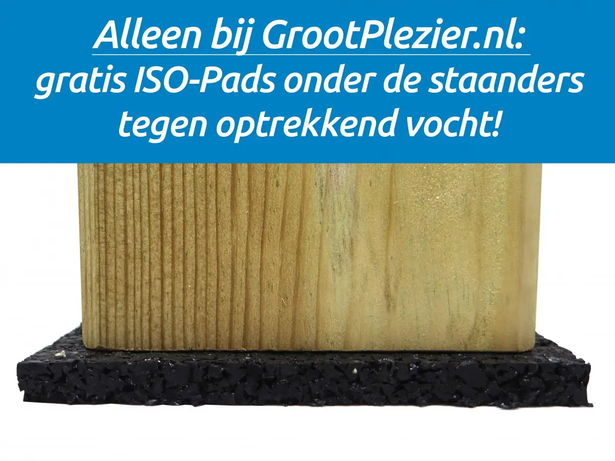 - Alleen bij GrootPlezier.nl: gratis ISO-Pads onder de staanders tegen optrekkend vocht!