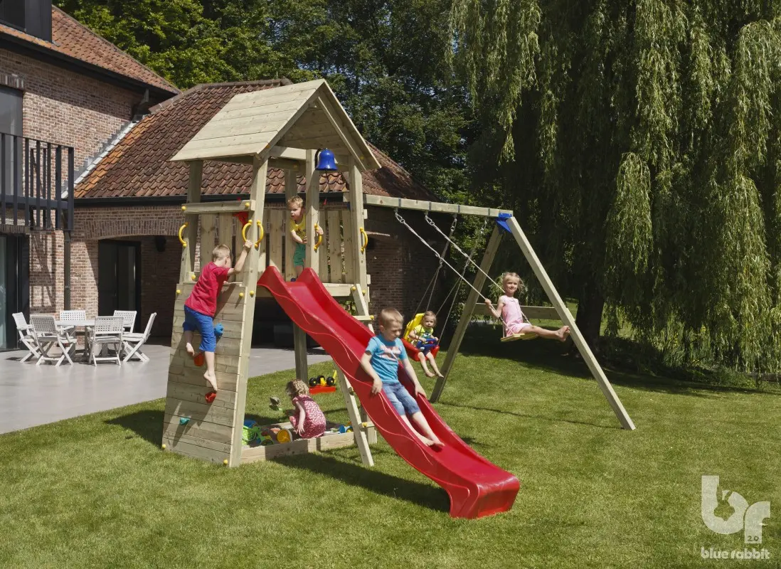 - Inclusief duidelijk opbouwplan, waardoor u het speeltoestel zelf stap voor stap in elkaar kunt zetten