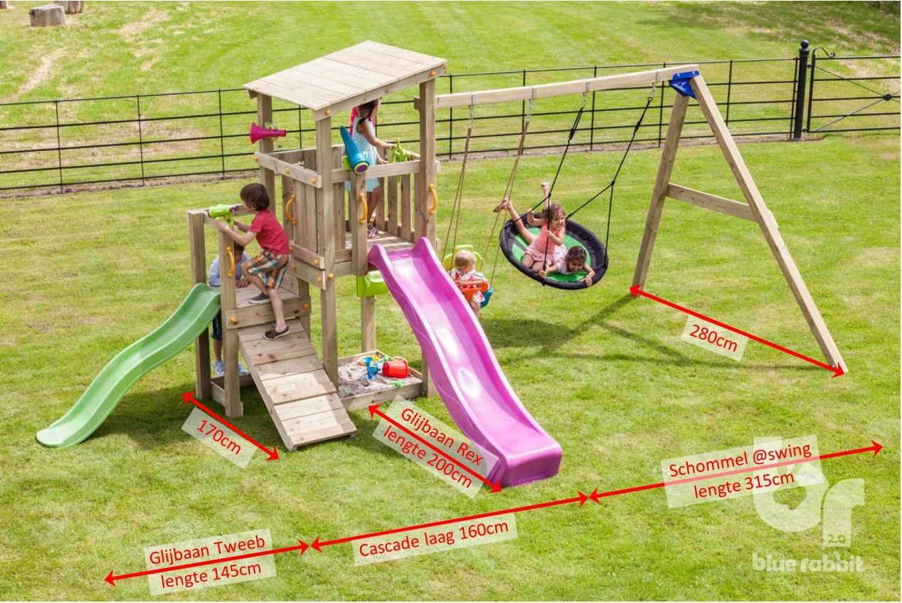 Speeltoestel Cascade 120 + glijbanen & schommel