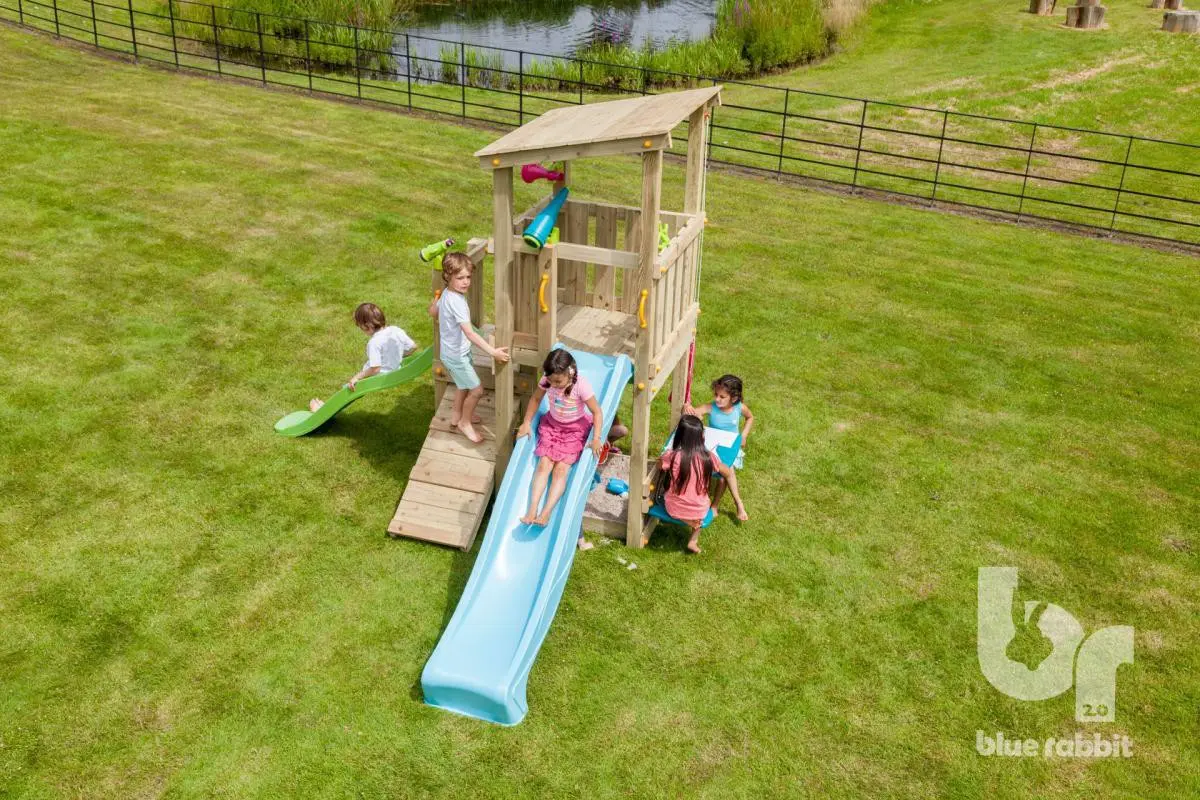 De Blue Rabbit Cascade is een prachtige speeltoestel die de kinderen direct leuk zullen vinden door zijn charmante uitstraling. De speeltoren heeft een platformhoogte van 90 en 120 cm. Kinderen van alle leeftijden kunnen makkelijk op de speeltoren komen door de houten schuine helling. Door de combinatie met de aanbouwschommel @swing biedt de speeltoren nog meer afwisseling en speelplezier!