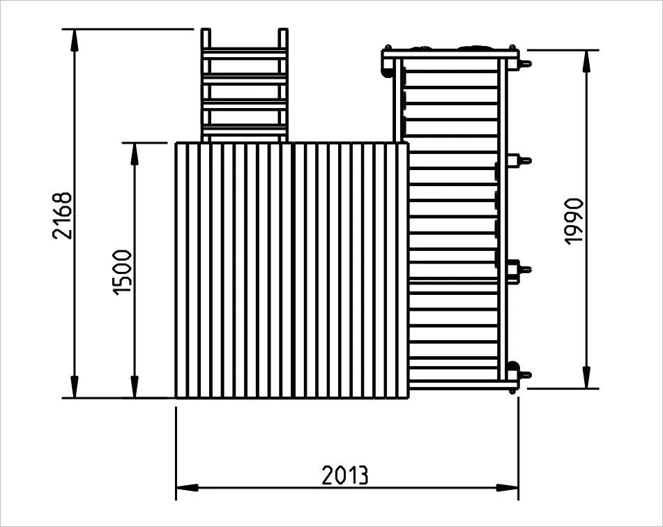 Speeltoestel Penthouse heeft 3 speelplateaus en verschillende in- en uitgangen. De plateaus van dit speeltoestel zijn onderling verbonden en kunnen elk uitgerust worden met een bijhorende glijbaan of aanbouwelement. Omdat de 3 speelplateaus zoveel mogelijkheden bieden, is de Penthouse slechts leverbaar in één hoogte.