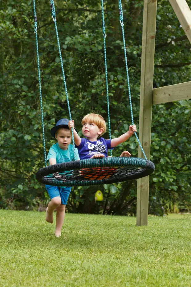 • De schommel is voorzien van stevige, stalen hoekverbindingen