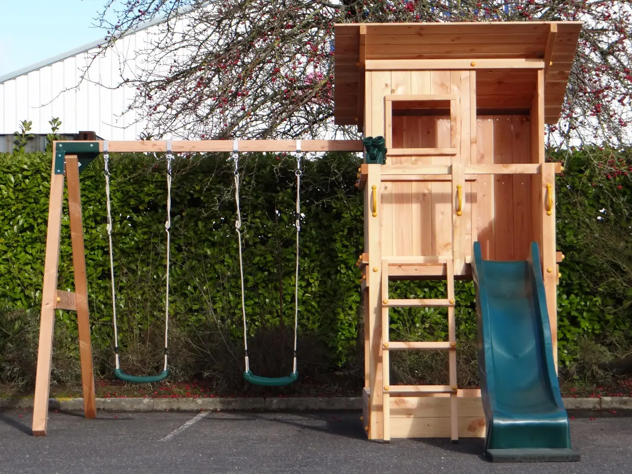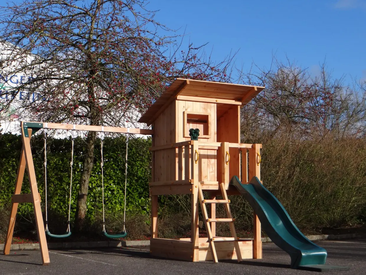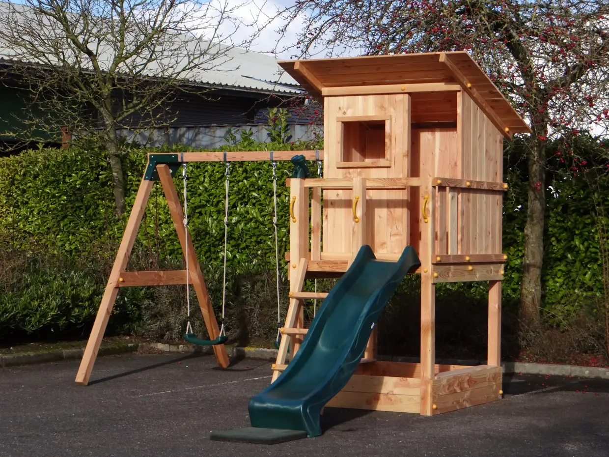 | Accessoires | 1 glijbaan, 2 kunststof schommelzitjes, 1 verrekijker, dichte achterkant |