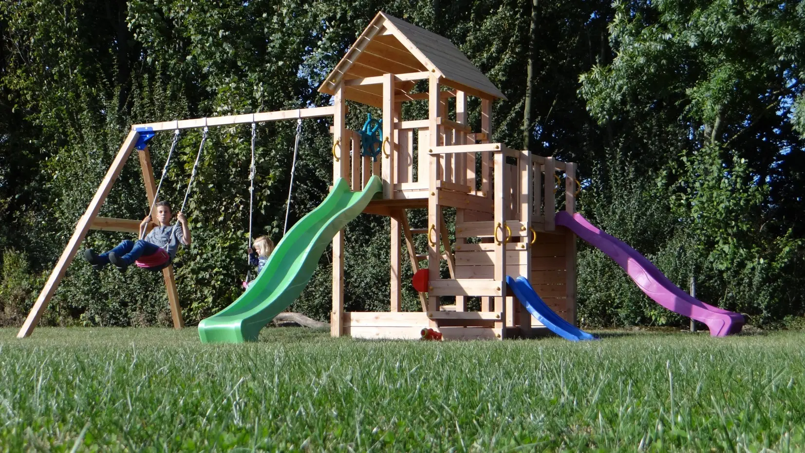 Speeltoestel Penthouse + 2 glijbanen & schommel