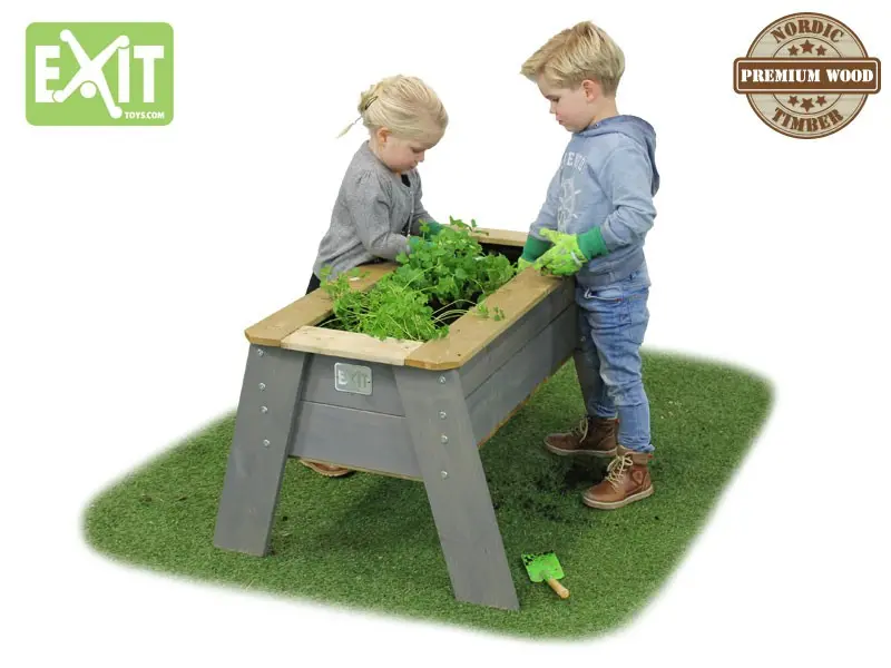Gezellig samen met de kinderen groenten en kruiden kweken? Dan is deze EXIT Aksent Kweektafel L met een ideale hoogte, de perfecte kweektafel! De tafel is erg ideaal voor de kleinere of verharde tuinen. Doe de bak, die aan de binnenzijde bekleed wordt met het meegeleverde worteldoek, vol met goede grond en de kinderen kunnen direct aan de slag.