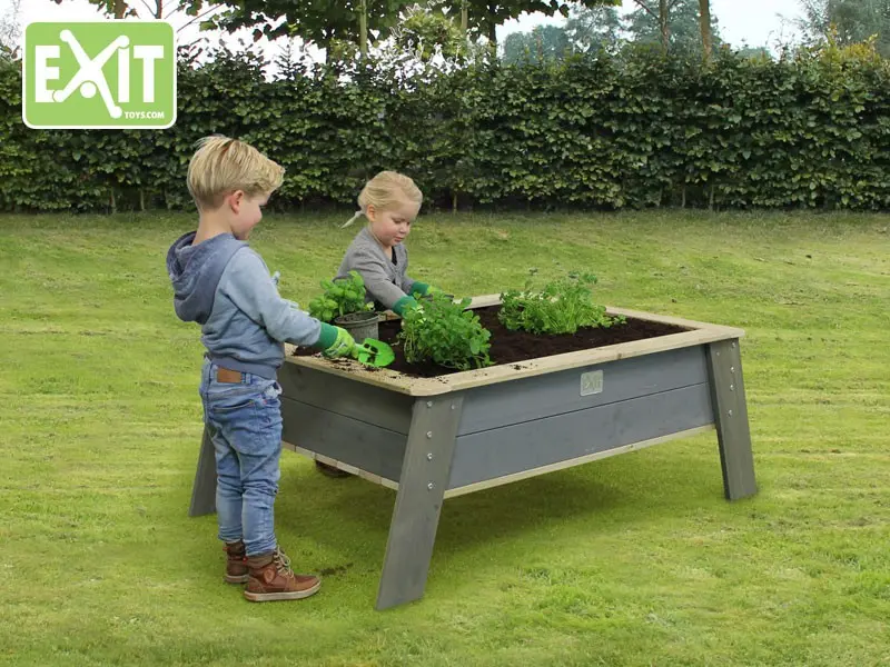 Gezellig samen met de kinderen groenten en kruiden kweken? Dan is deze EXIT Aksent Kweektafel XL met een ideale hoogte en ruime afmetingen, de perfecte kweektafel! De tafel is erg ideaal voor de kleinere of verharde tuinen. Doe de bak, die aan de binnenzijde bekleed wordt met het meegeleverde worteldoek, vol met goede grond en de kinderen kunnen direct aan de slag.
