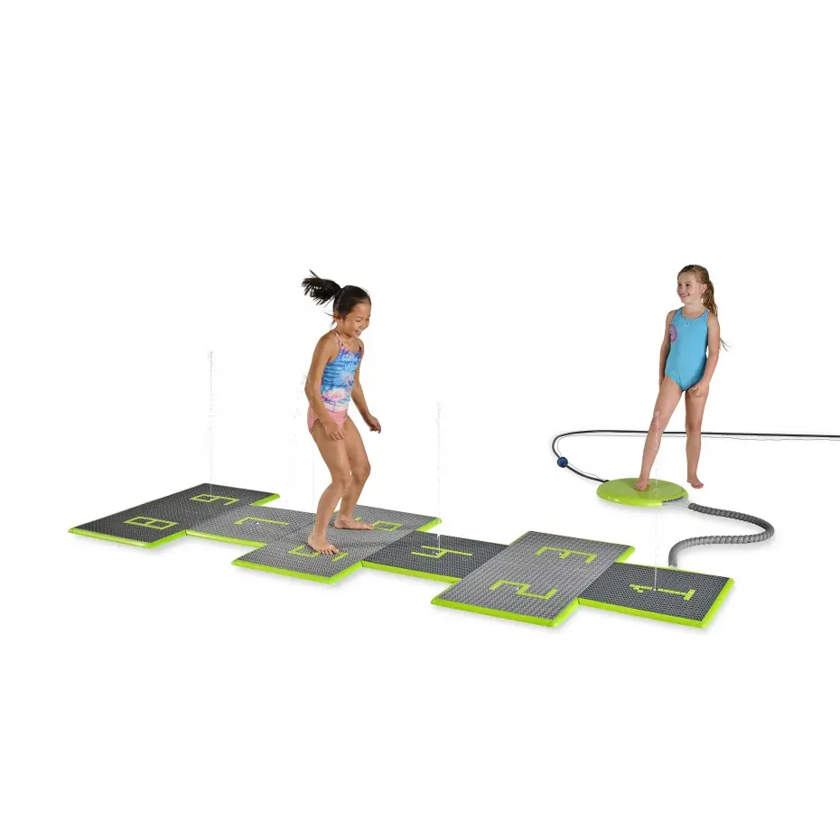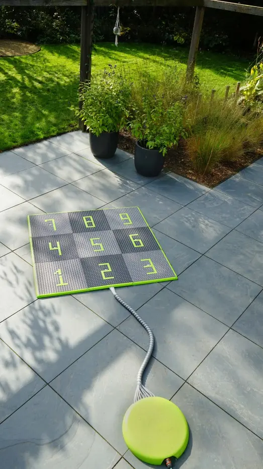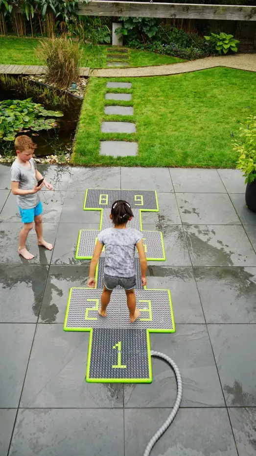 De EXIT Sprinqle is een set van negen water speeltegels voor kinderen. Alle tegels hebben een water spuitmond en verrassen kinderen elke keer weer door op de meest onverwachte momenten water te spuiten. Het interactieve waterspeelgoed kan bediend worden met een bedieningspaneel en met de EXIT Sprinqle app. Het bedieningspaneel wordt standaard meegeleverd en bevat drie spellen. Sluit de tuinslang aan op het paneel, tik erop met je voet en wordt verrast door één van de spellen. Ren achter de waterstralen aan, ontwijk ze of probeer ze juist te vangen. Met de Sprinqle water speeltegels van EXIT Toys beleven kinderen de hele zomer spetterende wateravonturen.