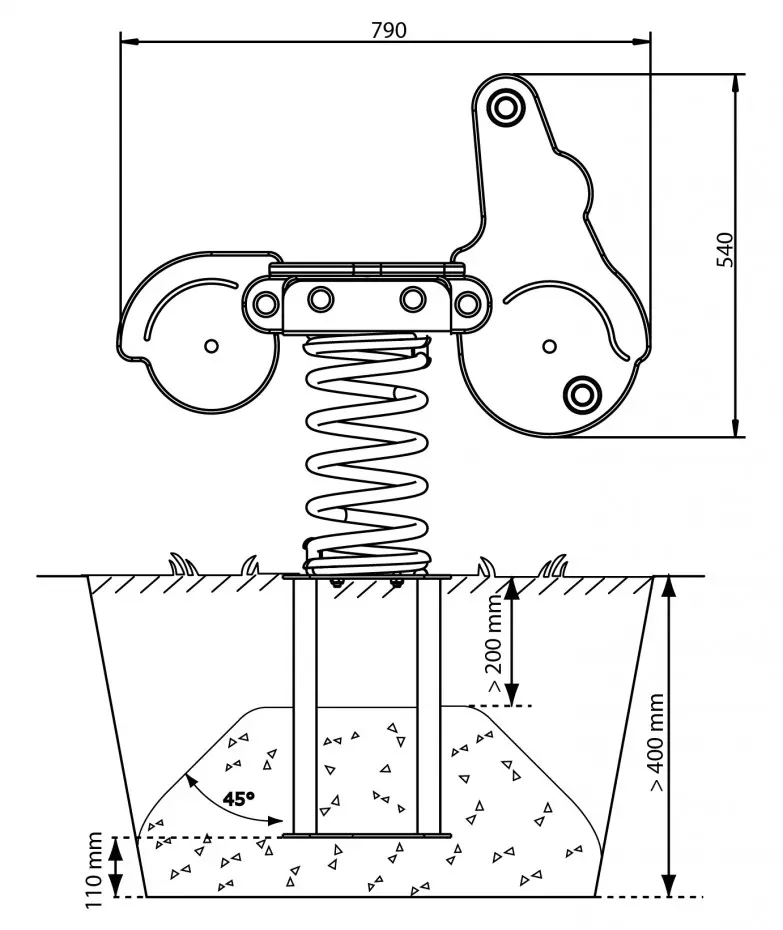 - De voetplaat van de veerwip dient op een stevige ondergrond bevestigd te worden.