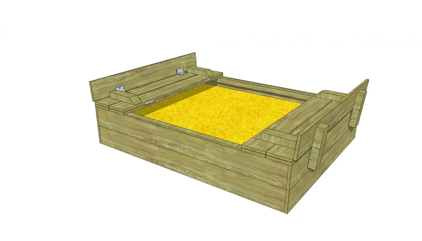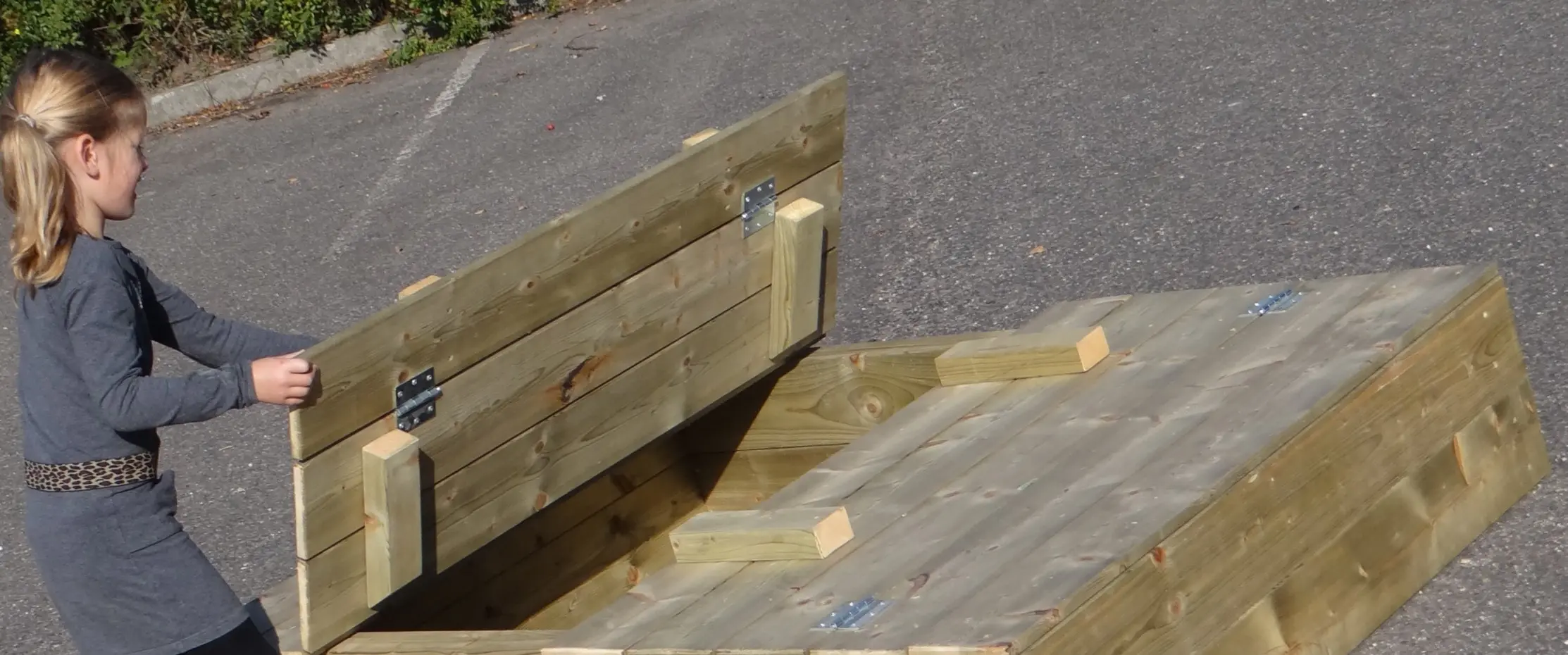 - Het deksel van de zandbak is eenvoudig op te klappen, zodat er 2 bankjes ontstaan