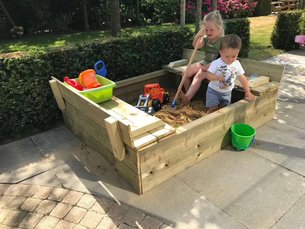 - Zandbak wordt geleverd als bouwpakket, incl. bevestigingsmateriaal en een duidelijke handleiding. De gaatjes voor de schroeven zijn niet voorgeboord.