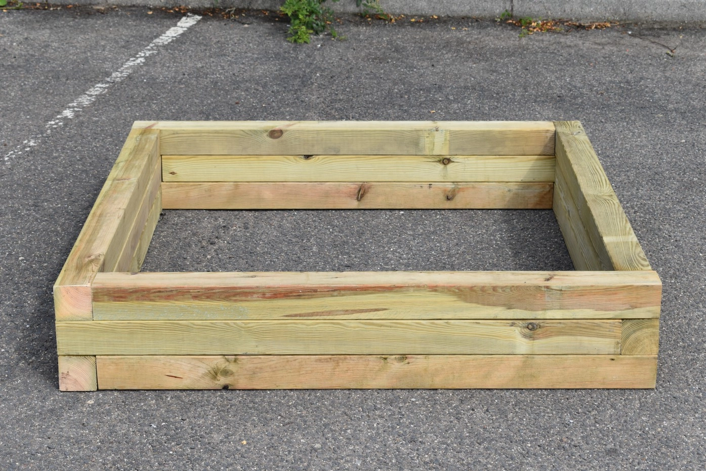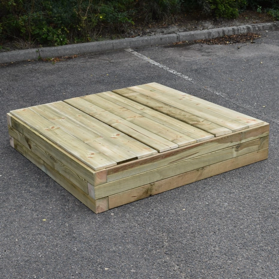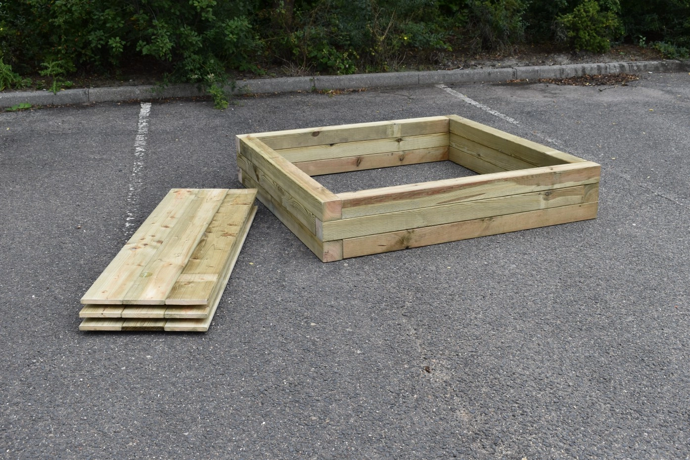 Houten zandbak met deksel Solution is een stevige, houten zandbak met een afneembaar deksel. De zandbak is gemaakt van dikke houten palen die onder druk geïmpregneerd zijn. Hierdoor kunt u jarenlang plezier hebben van deze zandbak. De zandbak wordt geleverd met een houten deksel. Het zandbakdeksel bestaat uit 3 delen, die los op de zandbak liggen.