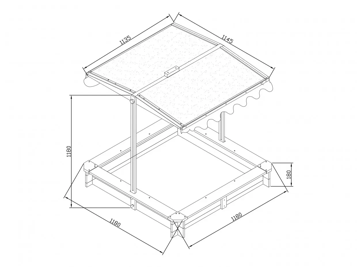 Houten zandbak Lily met kantelbaar zonnedak. De zandbak is geschikt voor meerdere kinderen. Maak samen met je vriendjes de leukste zandkastelen en de lekkerste koekjes! Het dak is zon- (UV50) en waterbestendig. Het zonnedak kan gekanteld worden in elke gewenste stand. Ben je klaar met spelen? Laat het zonnedak naar beneden schuiven, dan heb je direct een zandbakdeksel.