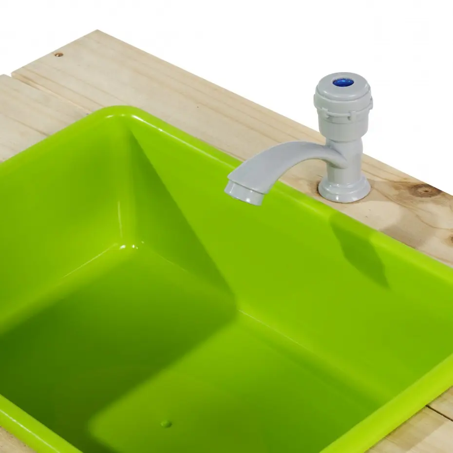 Zandbak met echte speelkeuken! Leef al je fantasie uit in deze grote, houten zandbak uit de EXIT Aksent serie. Een grote zandbak met veel speelruimte en een echte speelkeuken! Dit worden pas echte zandkoekjes. Bak ze maar lekker bruin...!