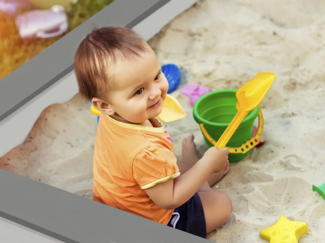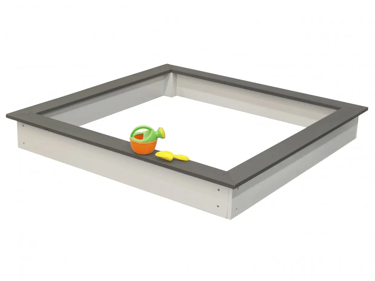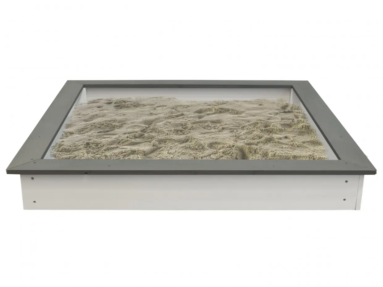 Deze grijs/witte zandbak van SUNNY zal de fantasie van uw kleine prikkelen, terwijl hij of zij buiten plezier heeft. Dankzij de houten constructie is de zandbak zeer sterk en duurzaam. Door de grote vierkante vorm kunnen meerdere kinderen tegelijkertijd gebruik maken van deze zandbak. Uw kinderen zullen een geweldige tijd hebben door te bouwen en te graven met vriendjes. De zandbak wordt geleverd met een afdekhoes, om na het spelen de zandbak af te dekken. In de zandbak Sandy kan maximaal 430kg zand.