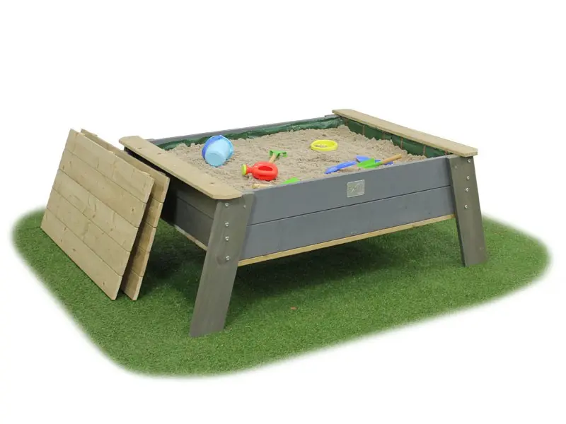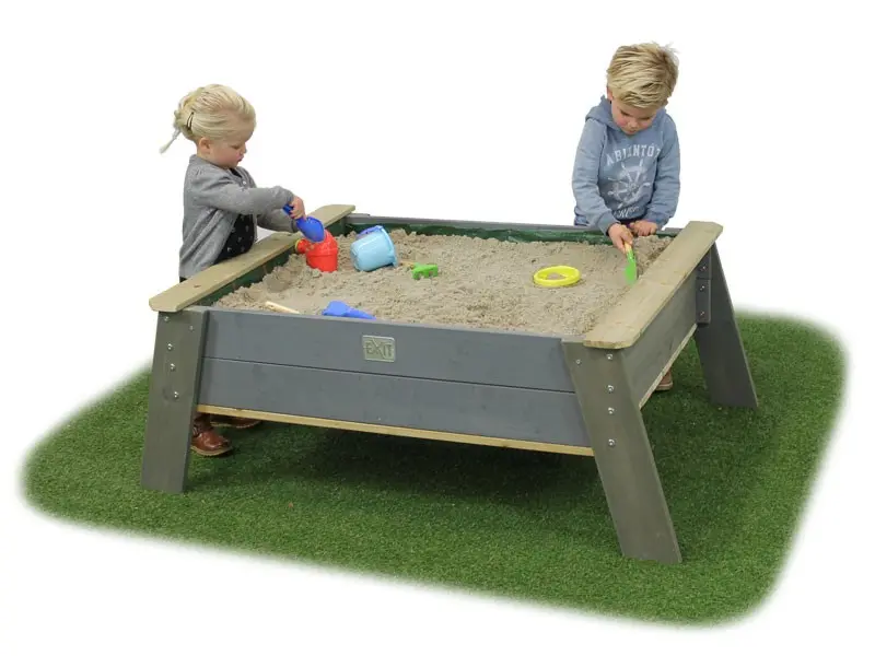 De EXIT Aksent zandtafel is een grote zand- en speeltafel op poten, zodat je staand en actief met meerdere kinderen tegelijk aan de tafel kunt spelen. Deze zandbak op poten past uitstekend in de tuin, maar ook op het terras. Het meegeleverde worteldoek houdt het speelzand in de tafel. En heb je even geen zin om met zand te spelen? Sluit dan de tafel af met de deksel en haal je potloden of speelgoedauto’s maar op, want je kunt er ook op knutselen, bouwen en tekenen. Met de EXIT Aksent zandtafel beleef je de leukste avonturen!