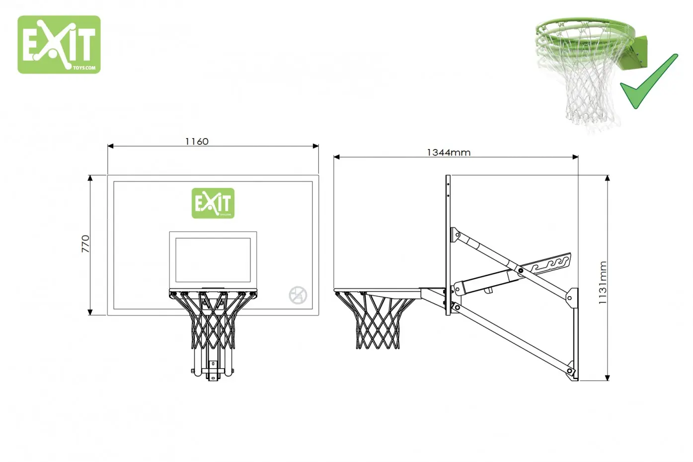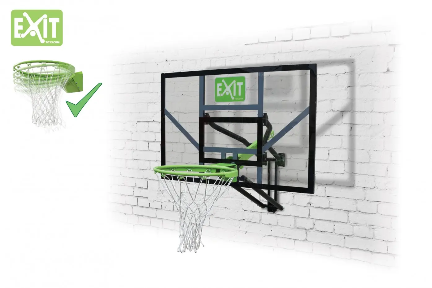 Met deze basketbalring is plezier gegarandeerd. De Wall-Mount System bestaal uit : een bord, ring met net en een muursteun om het geheel te bevestigen. Het in hoogte verstelbare bord heeft 5 standen. De ring die bij dit bord gebruikt wordt is een dunkring, deze veert mee zodat de dunk nog mooier uitgevoerd kan worden. De Wall-Mount System is met zijn mooie vormgeving en kleurstelling een aanwinst voor uw tuin of oprit.