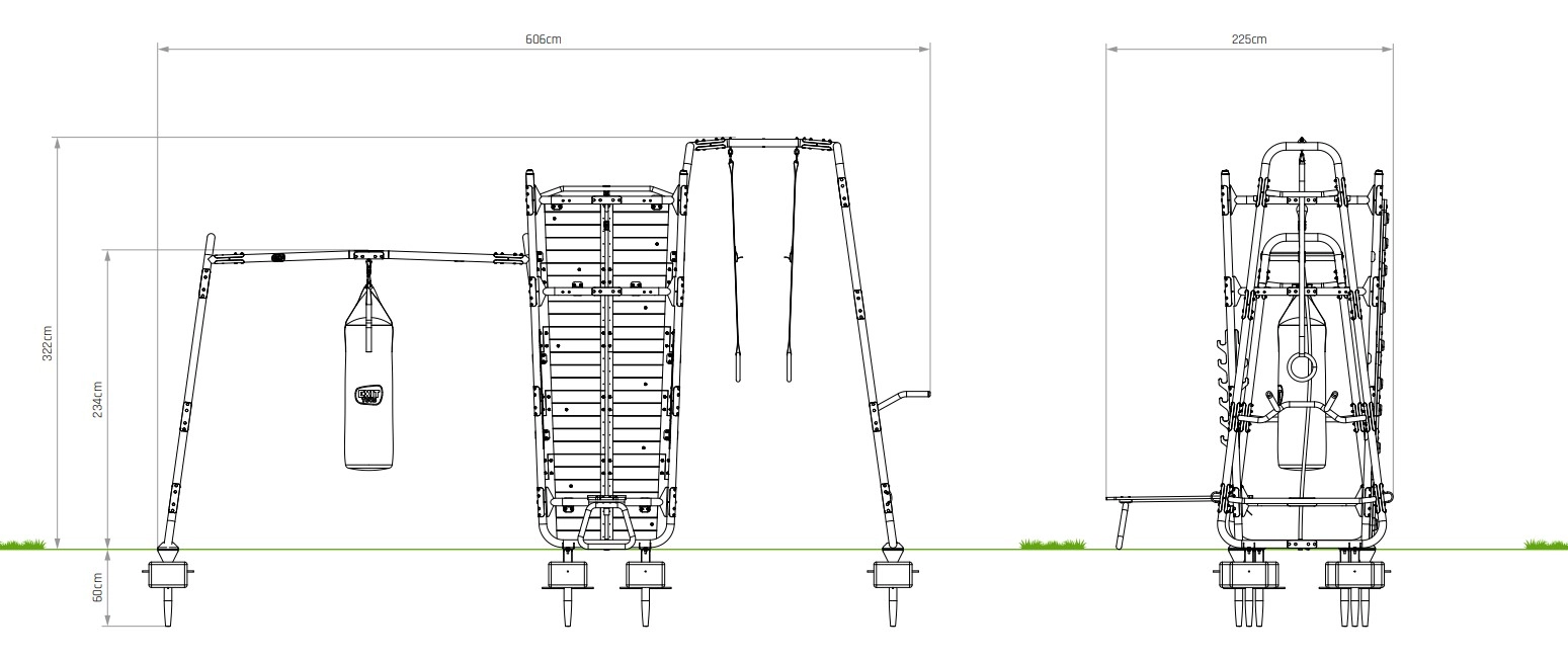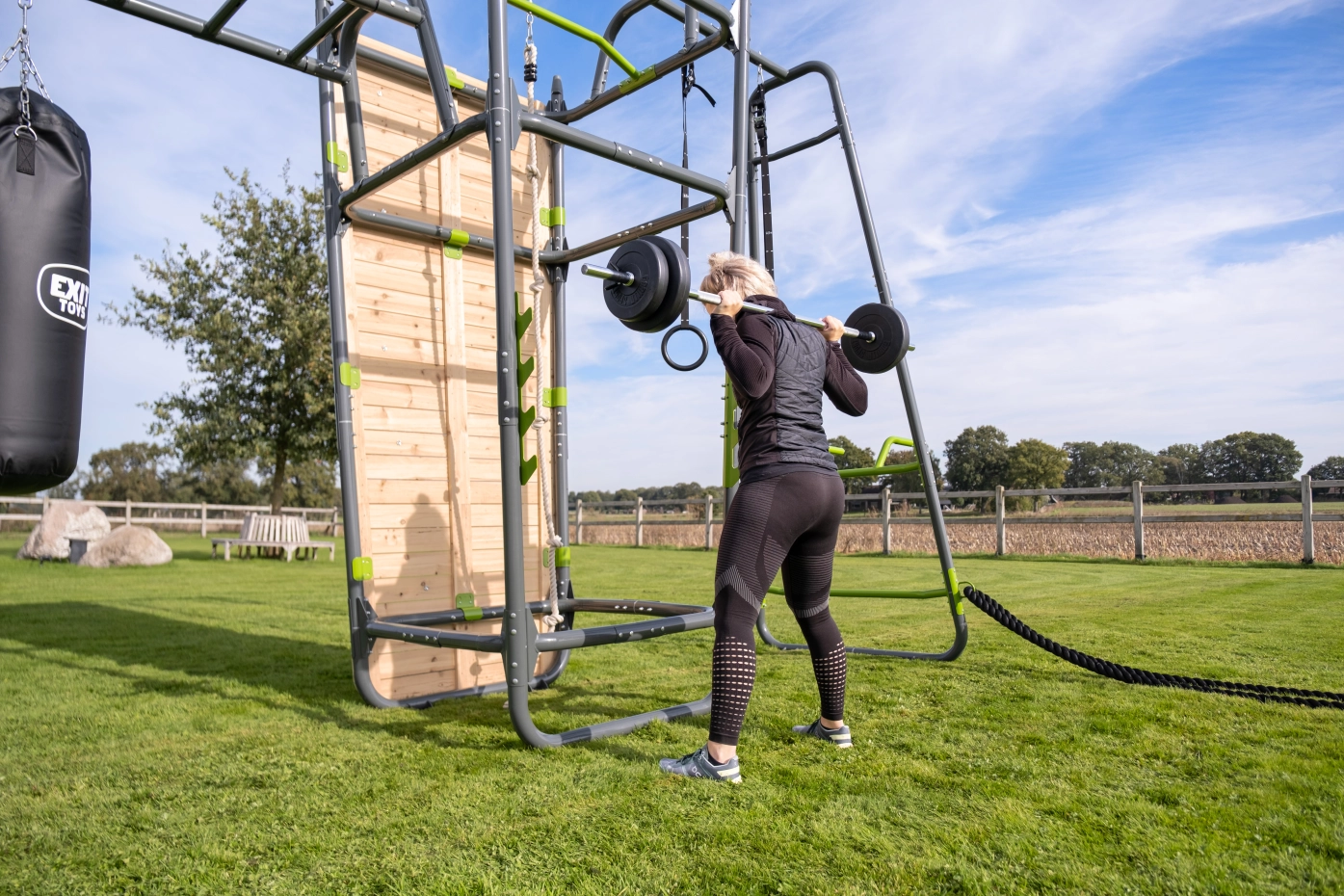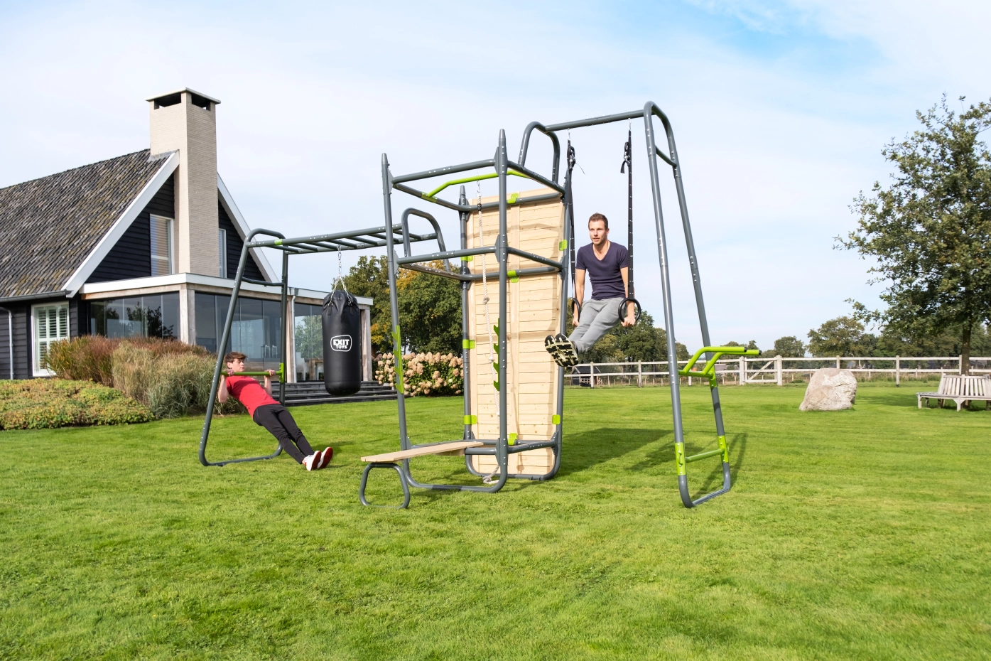 De EXIT GetSet PS610 is een fitnessrek van ruim zes meter voor buiten. De volgende accessoires zijn inbegrepen: oefenstang, bokszak, fitnessbank, haltersteunen, pull-up stang, klimtouw, kunststof turnringen, push-up stang, dip station, een klimwand en battle rope ringen. Deze extra uitgebreide uitvoering is multifunctioneel en biedt volop uitdaging voor sportieve 14-plussers en volwassenen. Haal de sportschool naar jouw huis met de GetSet PS610!