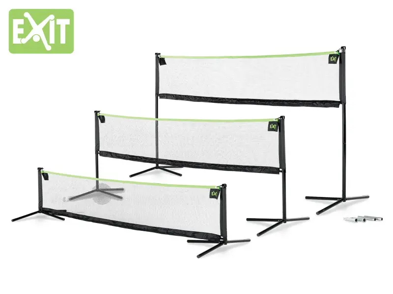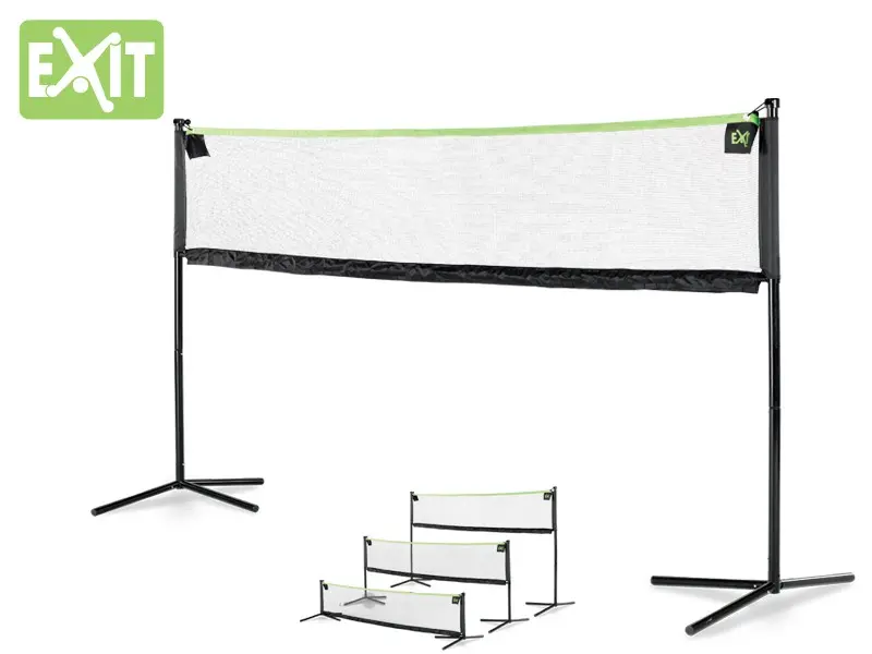 Het Exit Multi-sport net is een multifuncitoneel sportnet dat op drie verschillende hoogtes ingesteld kan worden. Tennis, voetvolley of volleybal, het kan allemaal. Door de breedte van 300 cm kan het net in de meeste tuinen geplaatst worden. Door de groene bovenrand is het net goed zichtbaar tijdens het spelen.